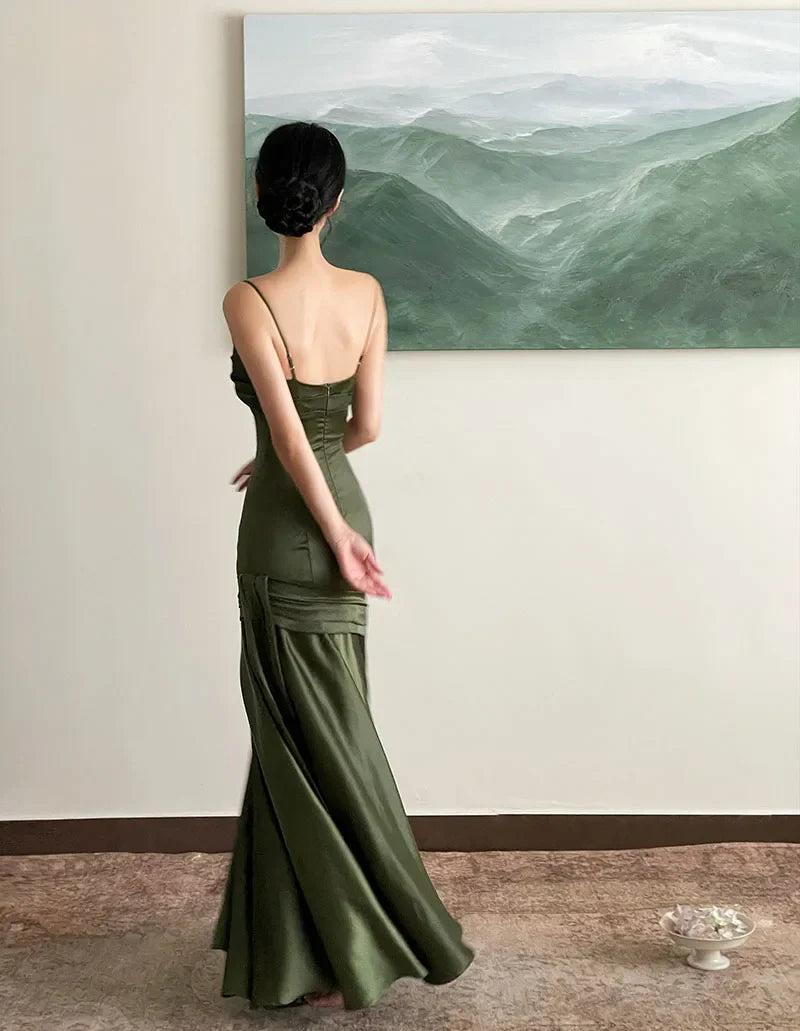 Elegant Emerald Green Irregular Patchwork Evening Party Dress High Waist Spaghetti Strap Pleated Hem Prom Gown For Women