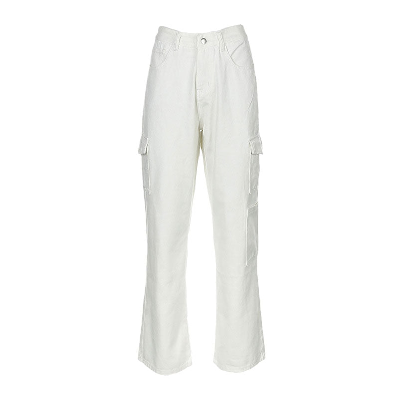 This street style pair of jeans hits the baggy & loose trend right on the head. Made of blend denim and polyester in solid color. embellished with slanted packages along with flap patch packages. featuring a high rise waistband trimmed with belt loops. a button closure along with a concealed zip fastening to the front. a wide-leg cut structured with particularly long hems and wide cuffs. Find more unique women's pants or trendy clothing in our boutique. and throw on a blazer to create a more structured look. add sneakers to make the style more casual. or a pair of heels to dress it up.