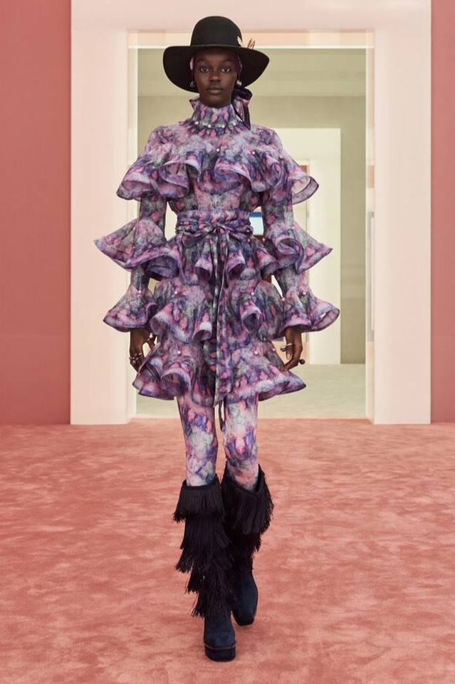 Aptly named for its ethereal aesthetic. Celestial mini dress is shaped with scalloped tiers of romantic ruffles.