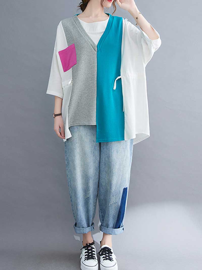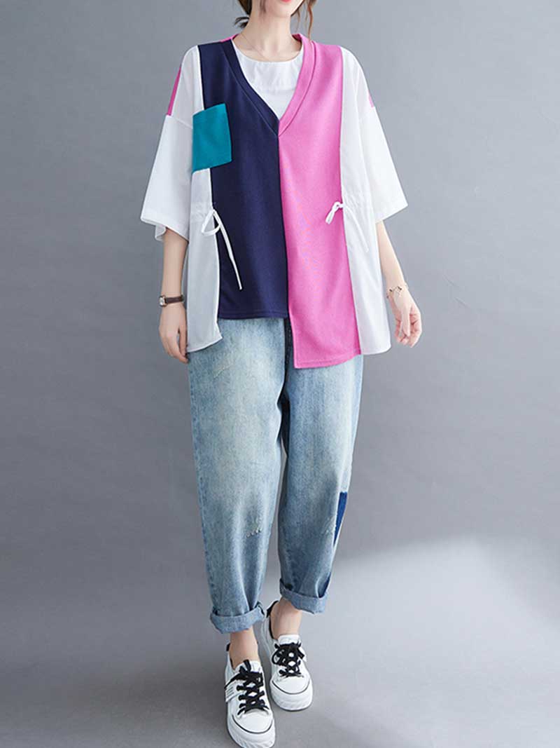 Our Colorful Print Round-Neck Shirt Top! This top is perfect for a day out with friends or a casual day at school or work. and the loose waist provides a comfortable. relaxed fit. The shirt is made of a light. breathable cotton material. making it perfect for warm spring and summer days. It comes in two gorgeous colors: Peacock-Blue and Rose-Red. So why not add a little color to your life with our Colorful Print Round-Neck Shirt Top?