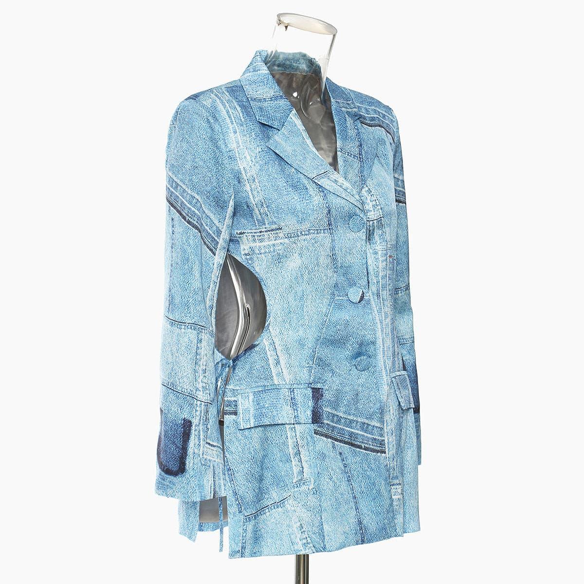 This stylish denim jacket is made of satin fabric and features a graffiti print. Lightweight and comfortable. it's perfect for any occasion. The fabric is made of high-quality material that ensures breathability and durability. The jacket also offers pockets and a modern. slim fit design.