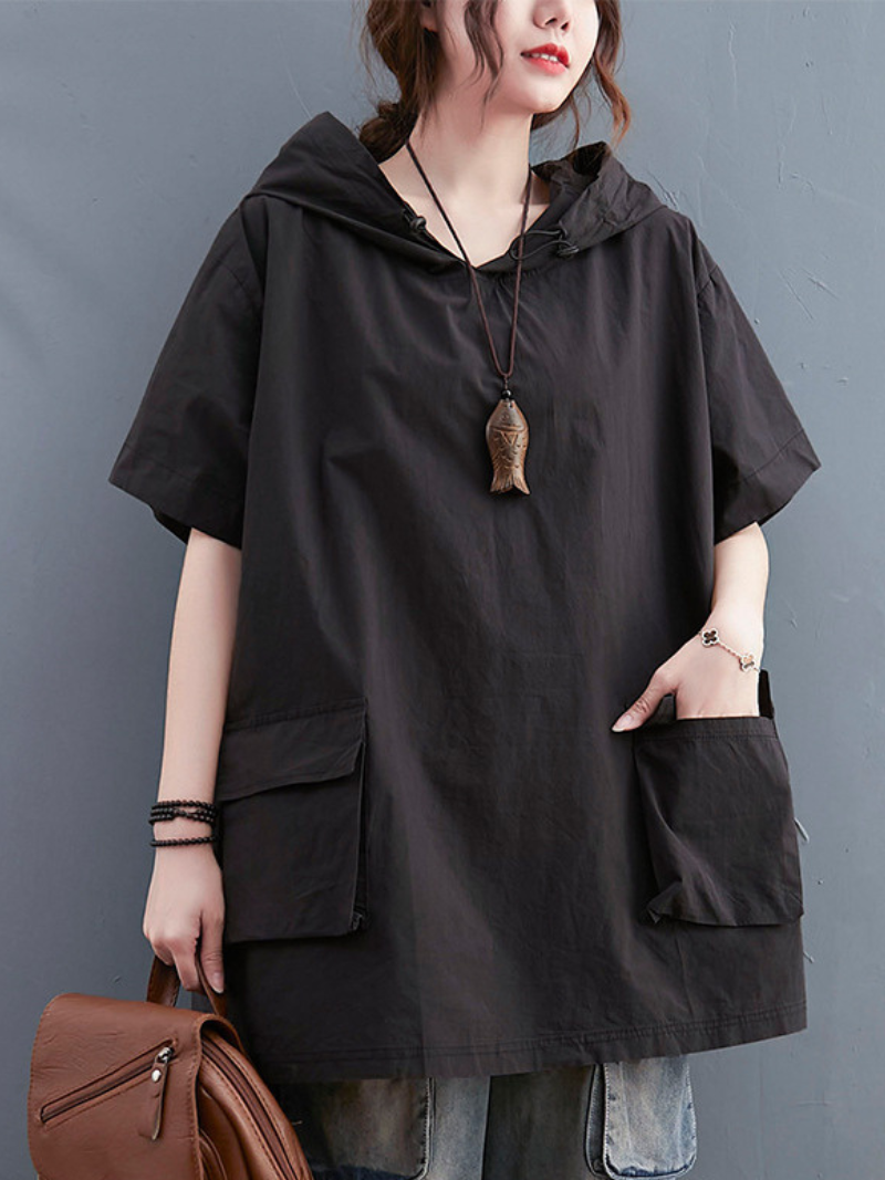 Discover ultimate comfort and style with our Women's Loose Tops. Made from high-quality cotton. these tops offer a soft and breathable feel. Available in versatile black and refreshing green. they are perfect for any casual occasion. The short sleeves and hooded collar add a contemporary touch to your look. while the solid color pattern ensures easy pairing with any outfit. Designed in one size to fit all. the measurements include a length of 73cm. bust of 146cm. shoulder width of 51cm. and sleeves of 21cm. Embrace relaxed fashion without compromising on elegance with these chic and comfy loose tops.