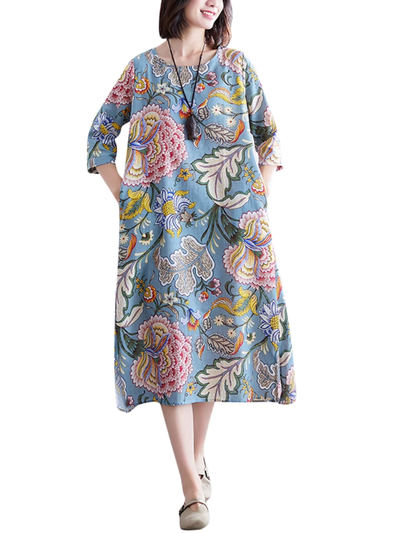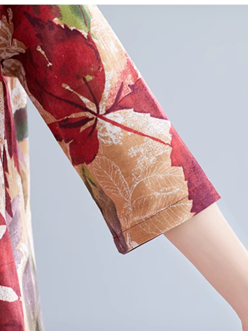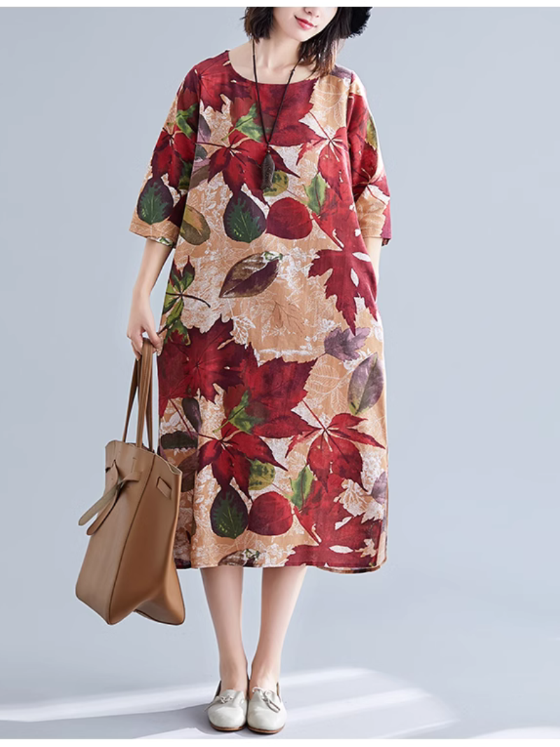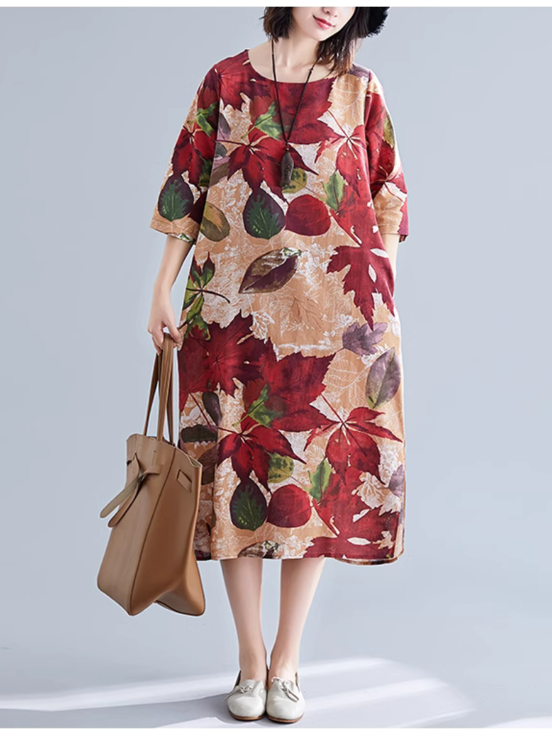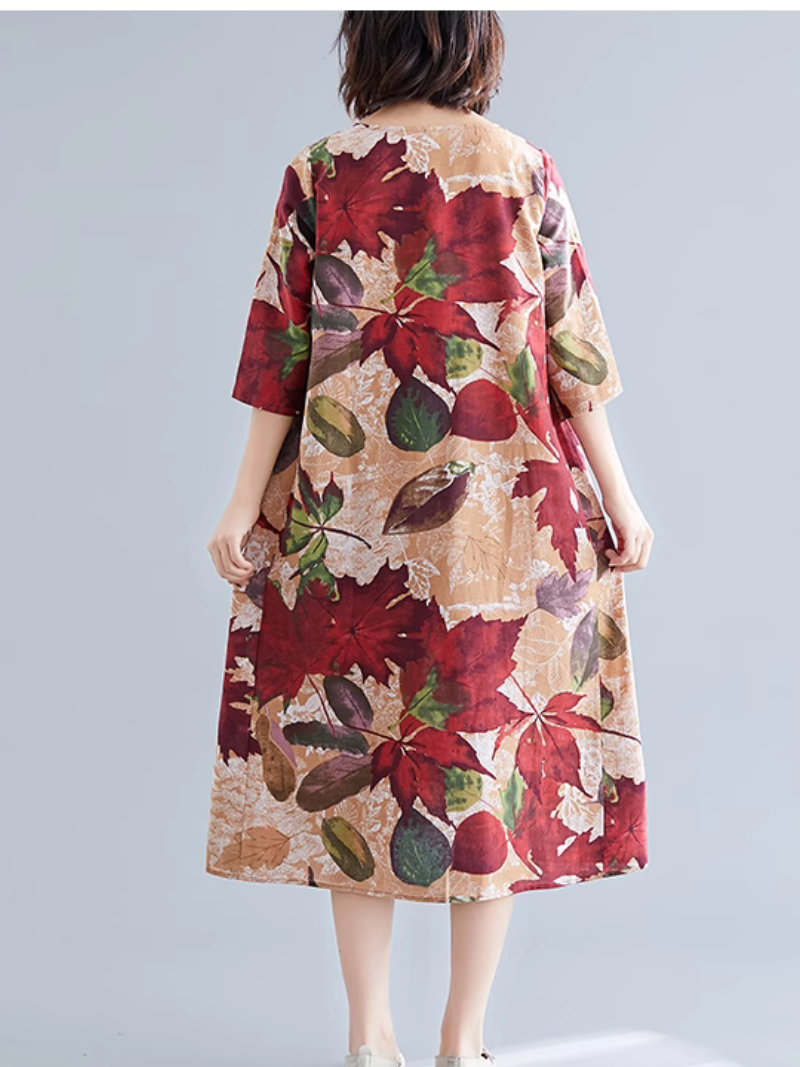 Women's Printed A-Line Dress. a perfect blend of comfort and style. Made from high-quality cotton and linen materials. this dress ensures breathability and durability. Available in two stunning colors. green and red. it brings a touch of vibrancy to your wardrobe. The round neck collar adds a chic element. while the five-quarter sleeves provide a trendy look. The dress comes in four sizes - S. M. L. and XL. each with precise measurements for a perfect fit. With a length ranging from 114cm to 118cm and a bust size from 96cm to 112cm. this A-line dress is a versatile and fashionable choice for any occasion.