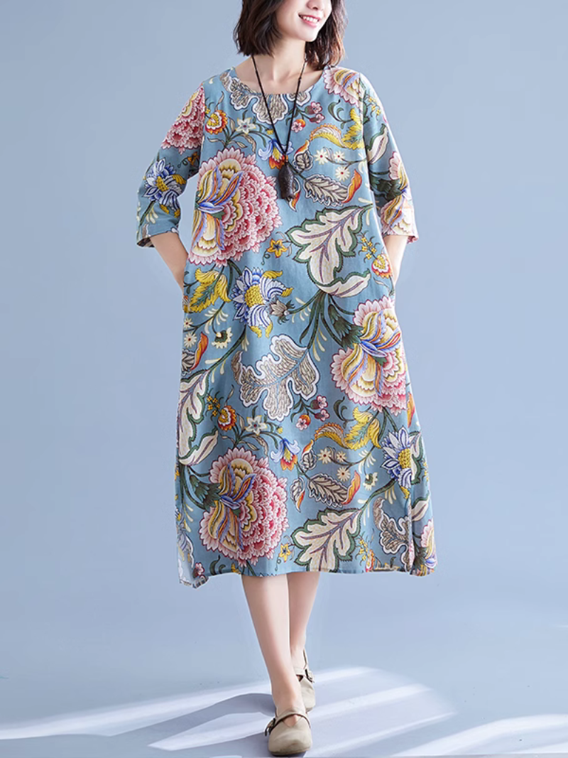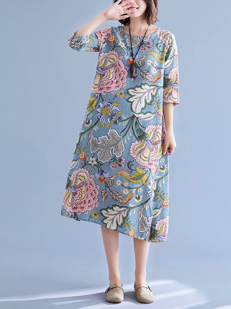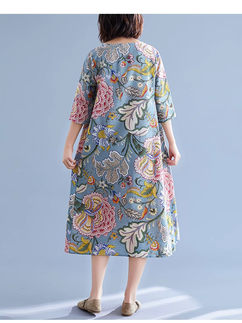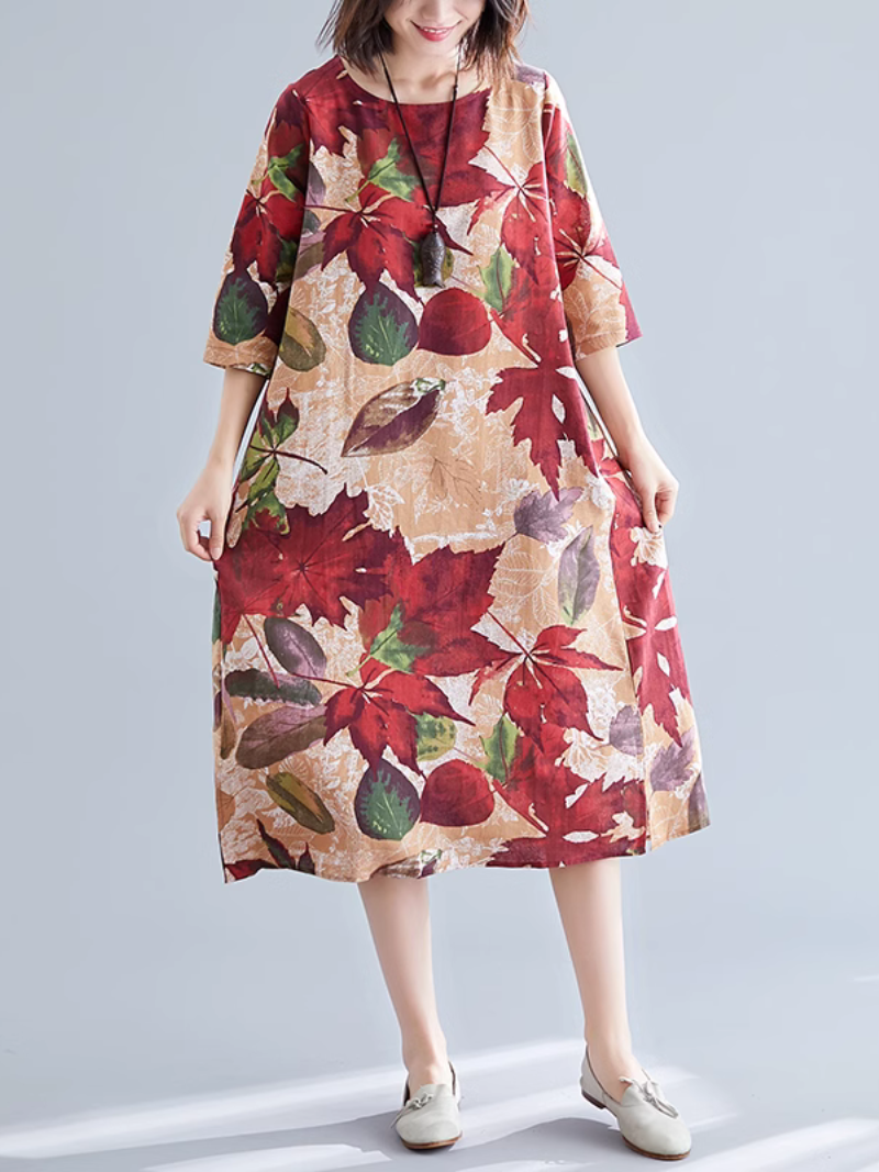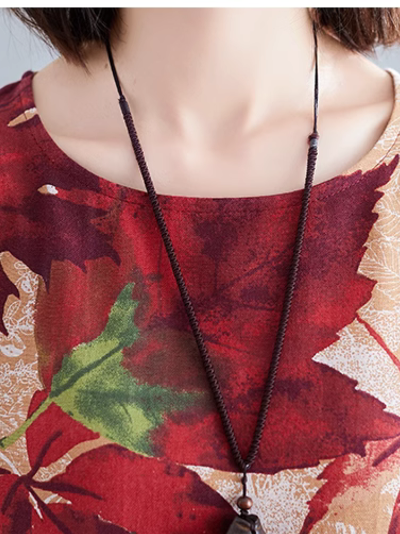 Women's Printed A-Line Dress. a perfect blend of comfort and style. Made from high-quality cotton and linen materials. this dress ensures breathability and durability. Available in two stunning colors. green and red. it brings a touch of vibrancy to your wardrobe. The round neck collar adds a chic element. while the five-quarter sleeves provide a trendy look. The dress comes in four sizes - S. M. L. and XL. each with precise measurements for a perfect fit. With a length ranging from 114cm to 118cm and a bust size from 96cm to 112cm. this A-line dress is a versatile and fashionable choice for any occasion.