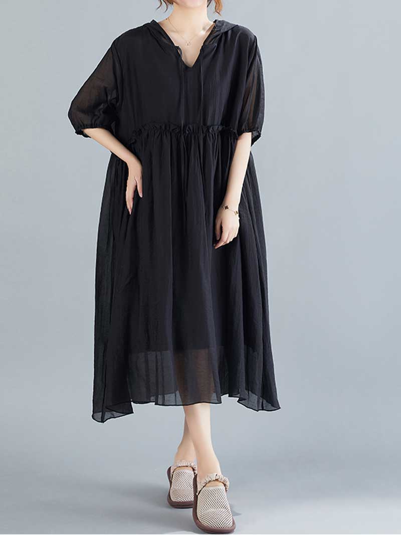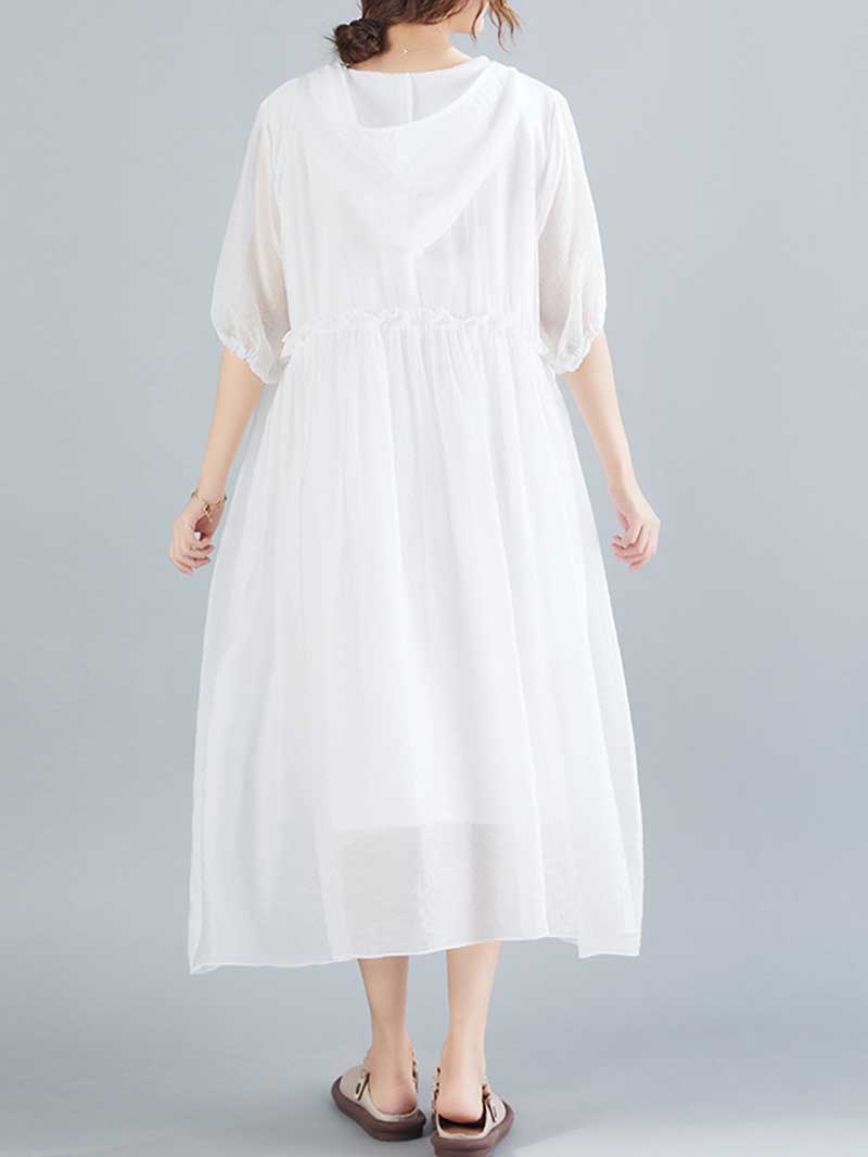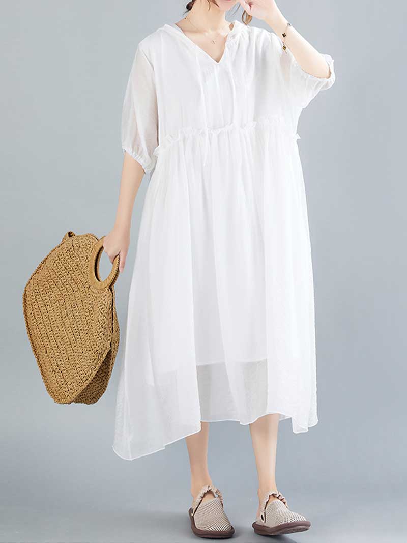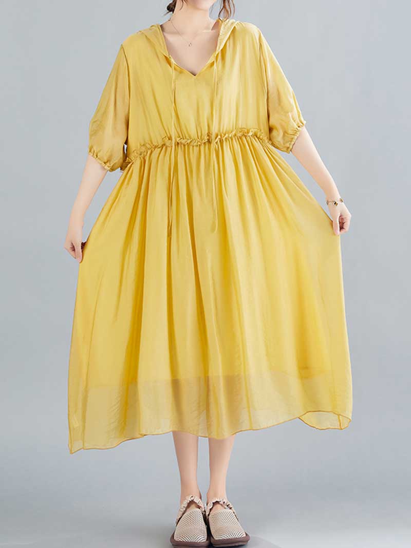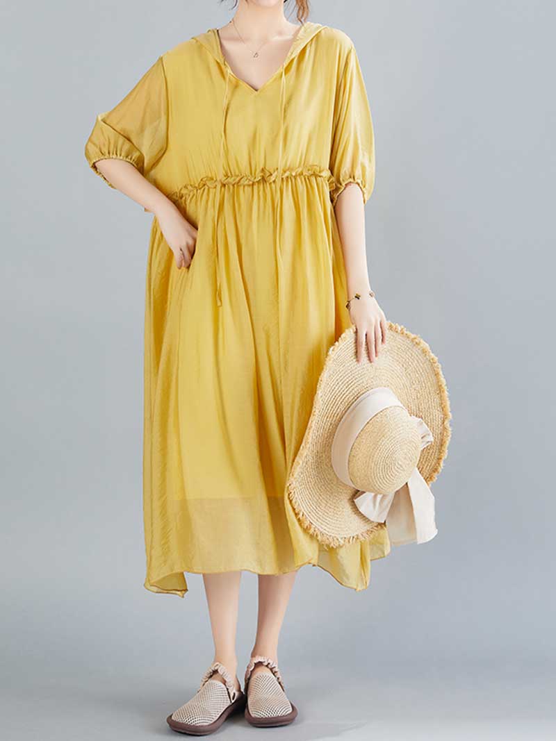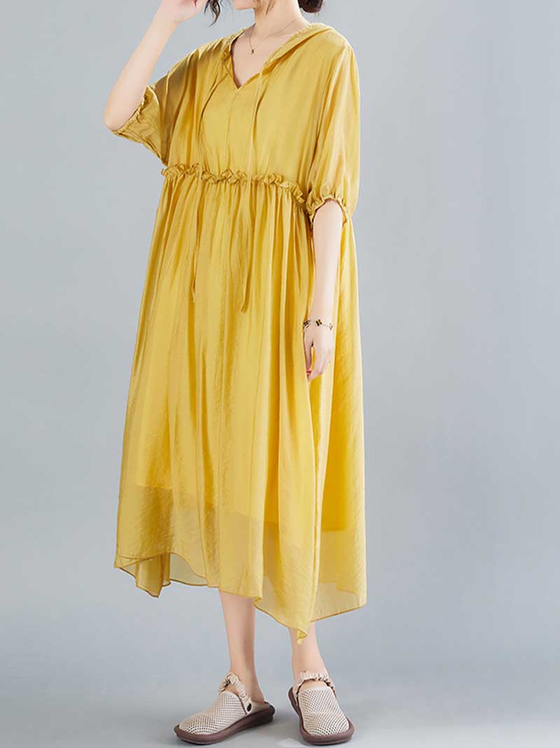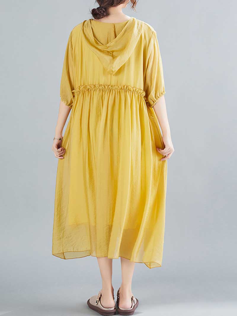 Looking for a summer dress that's airy. comfortable. and stylish? Check out our Plain Cotton Short Sleeves Hooded Style A-Line Dress! Made of lightweight cotton. this dress is perfect for hot summer days. The V-neck and short sleeves keep you cool and comfortable. while the loose waist and A-line silhouette flatters your figure. Plus. the hooded style adds a touch of attitude. Available in white. yellow. or black.