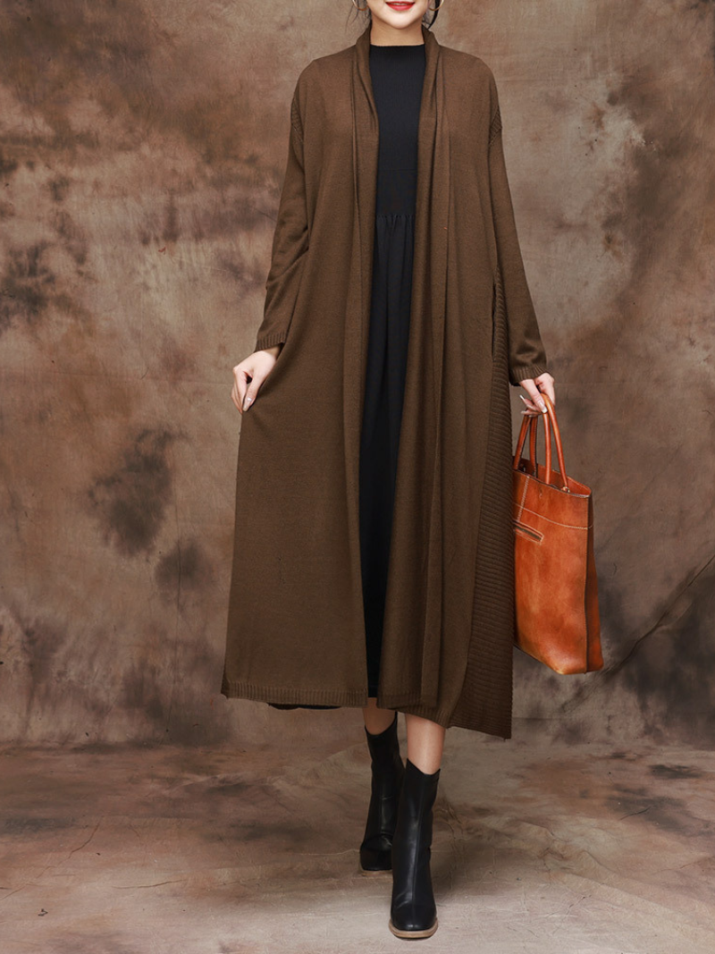 Elevate your winter wardrobe with our Women's Side Pocket Cardigan Coat. Crafted from a luxurious blend of imported ecological cashmere (45.8%). merino wool (30%). anti-pilling fiber (15%). and spandex (9.2%). it combines comfort with style. The half turtleneck collar and V-neck add a modern touch. while the half middle waist flatters your form. The coat features convenient side pockets and long sleeves for practicality. Available in oatmeal. coffee green. and black. its versatile shades suit any occasion. One size fits all. with dimensions including a length of 123cm. a bust of 130cm. a shoulder width of 48cm. and a sleeve length of 50cm. Redefine elegance and functionality with this chic cardigan coat