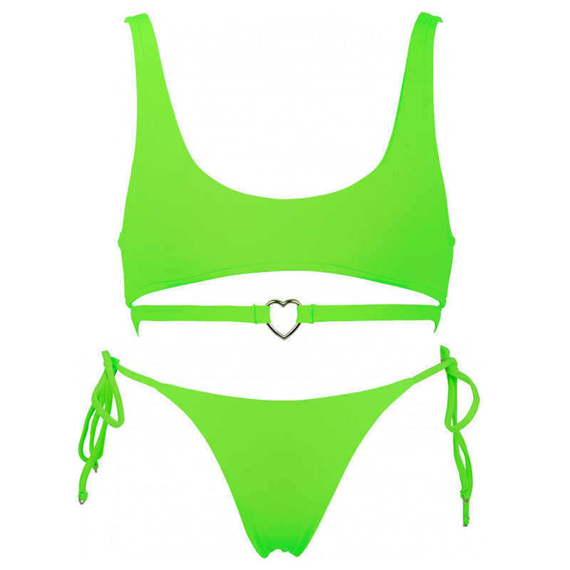 Fall in Love Metal Heart Tie String Bralette Bikini Set - Green