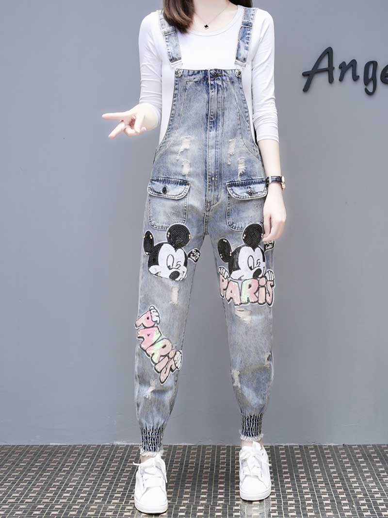 The Falling in Love Denim Overall Dungaree is the perfect addition to your summer wardrobe! Made from denim fabric. this overall features a Mickey Mouse print and has a feminine tone of voice. The overall is lightweight and perfect for warm-weather wear.