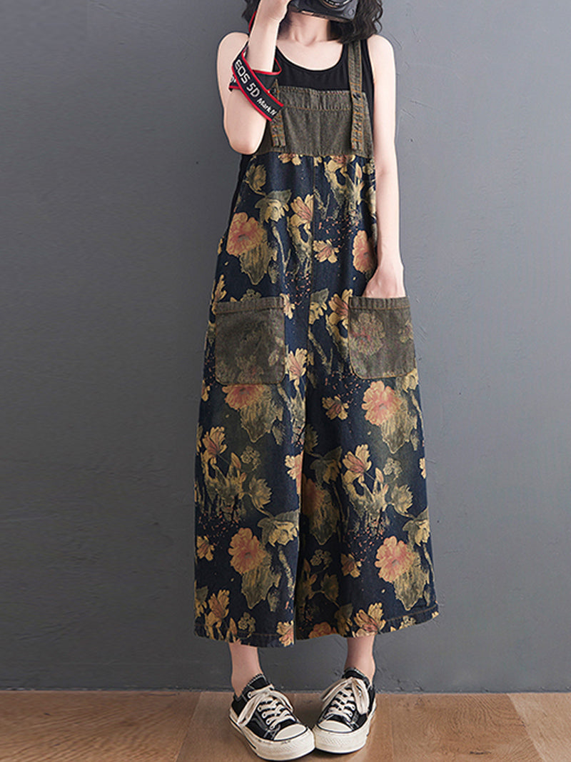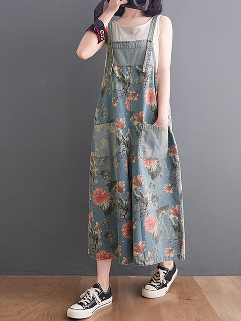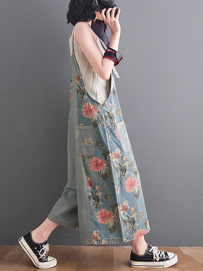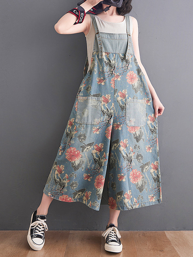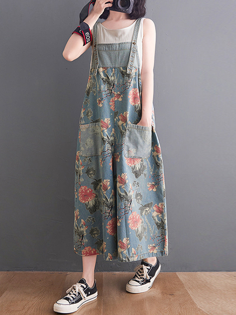 These overall dungarees are perfect for finding your way in the world. Made of denim cotton. they're medium-thick and wearable in spring and summer. The floral pattern is stylish and feminine. while the high waist makes them flattering on all body types. The wide-leg pants style is comfortable and elegant. and the blue and dark blue colors are classic and versatile.