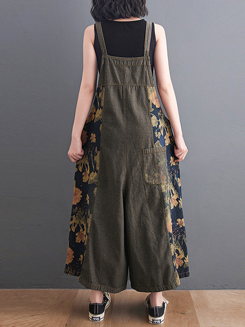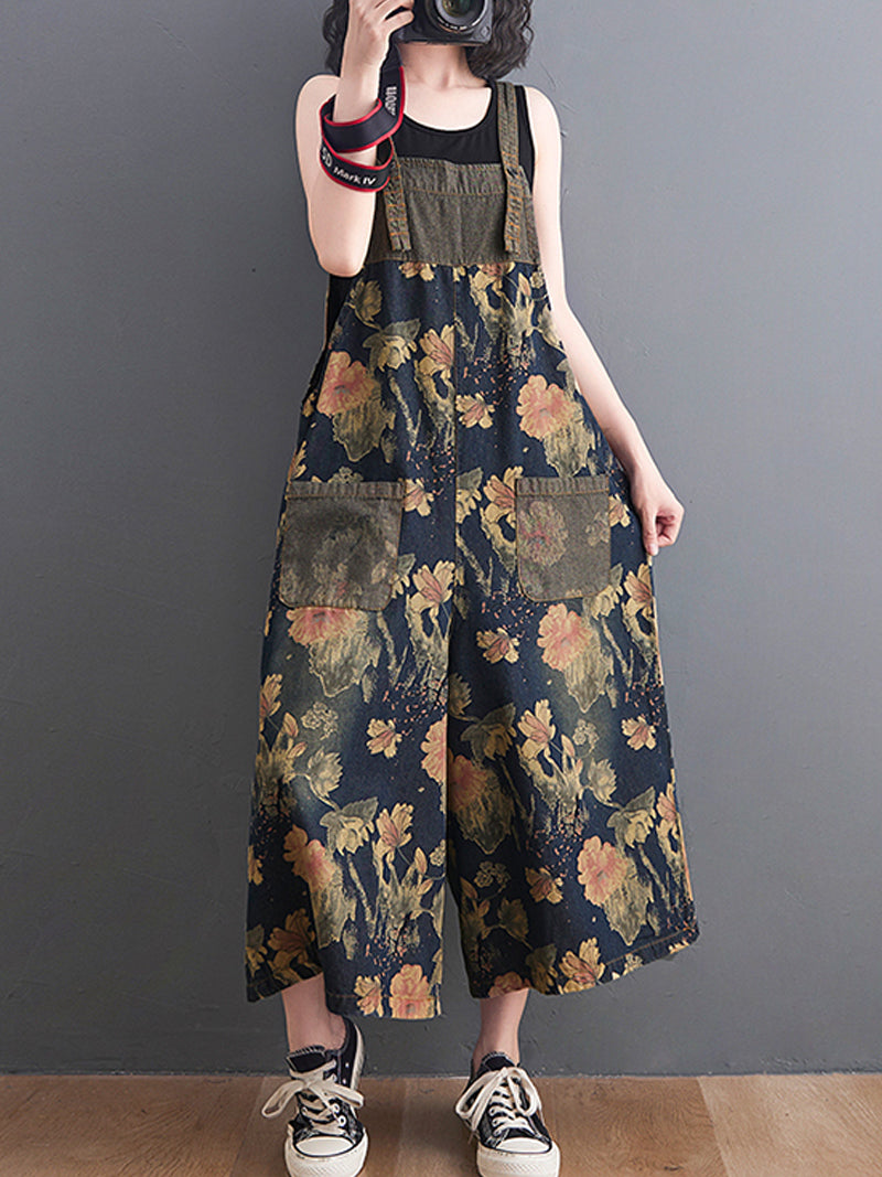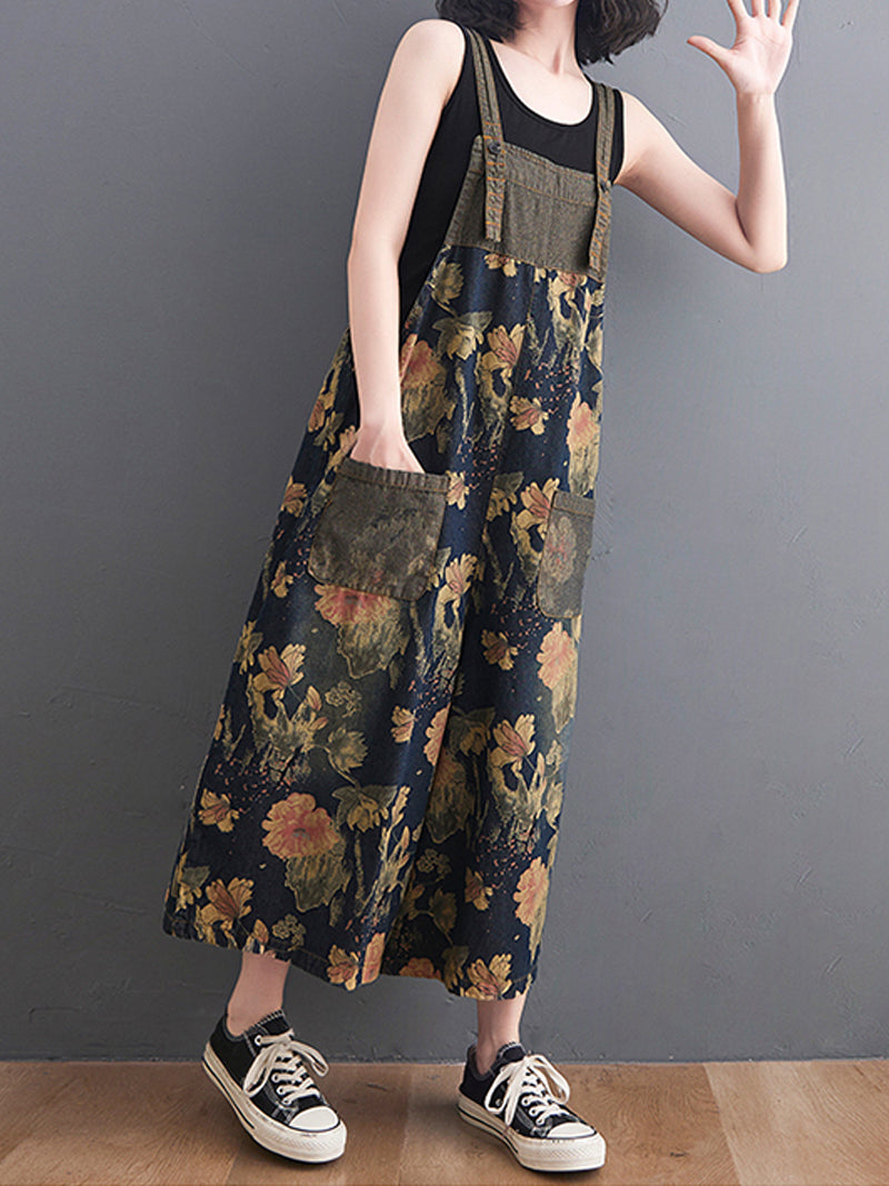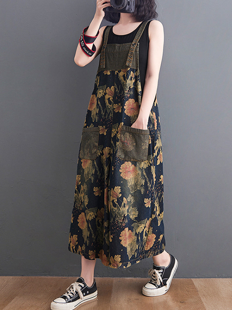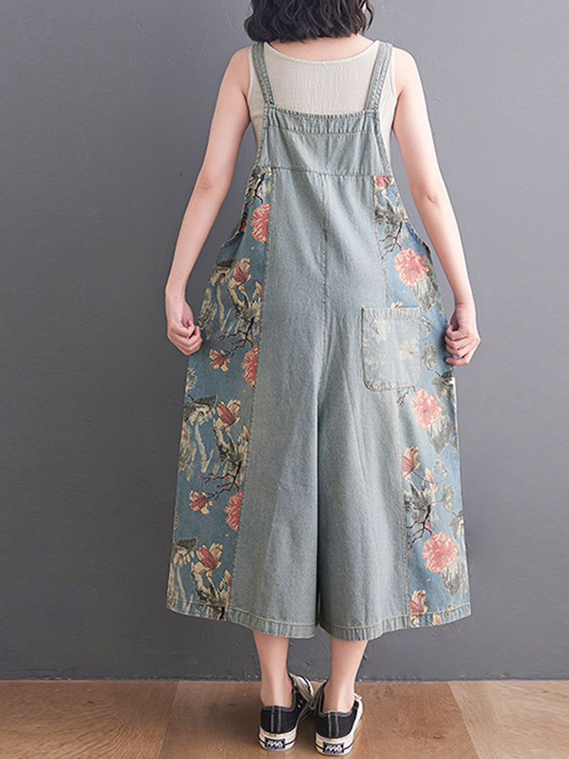 These overall dungarees are perfect for finding your way in the world. Made of denim cotton. they're medium-thick and wearable in spring and summer. The floral pattern is stylish and feminine. while the high waist makes them flattering on all body types. The wide-leg pants style is comfortable and elegant. and the blue and dark blue colors are classic and versatile.