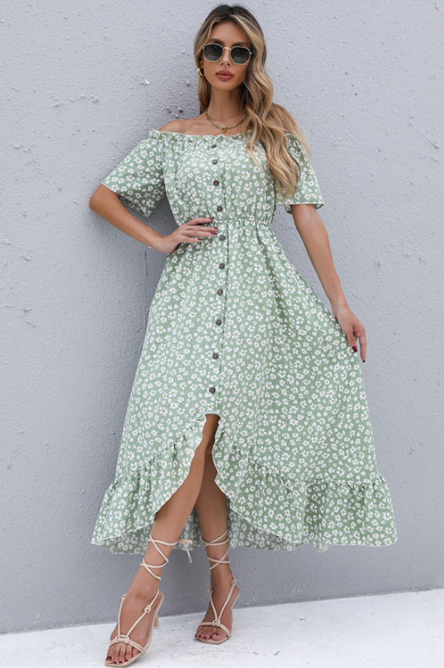 Neckline:Slash neck.