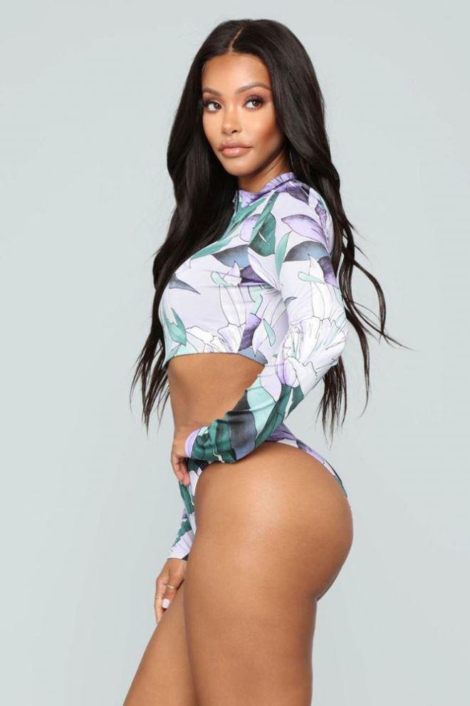 This two-piece swimsuit is designed for maximum sun protection. with a long-sleeved top and full-length pants that are made from quick-drying. chlorine-resistant fabric. The front zipper closure offers an adjustable fit and ample coverage. while the fun printed design adds a stylish edge.