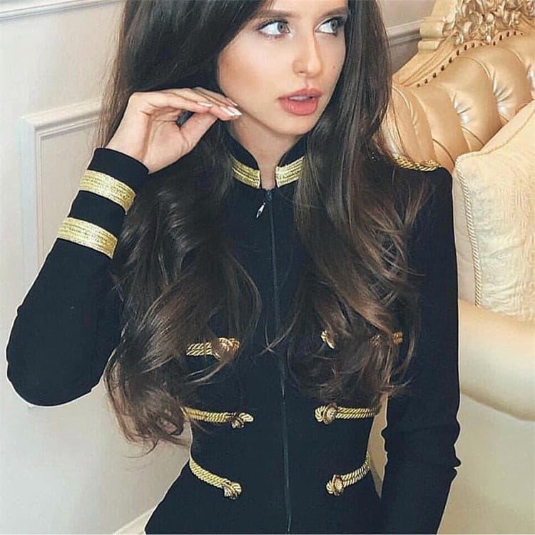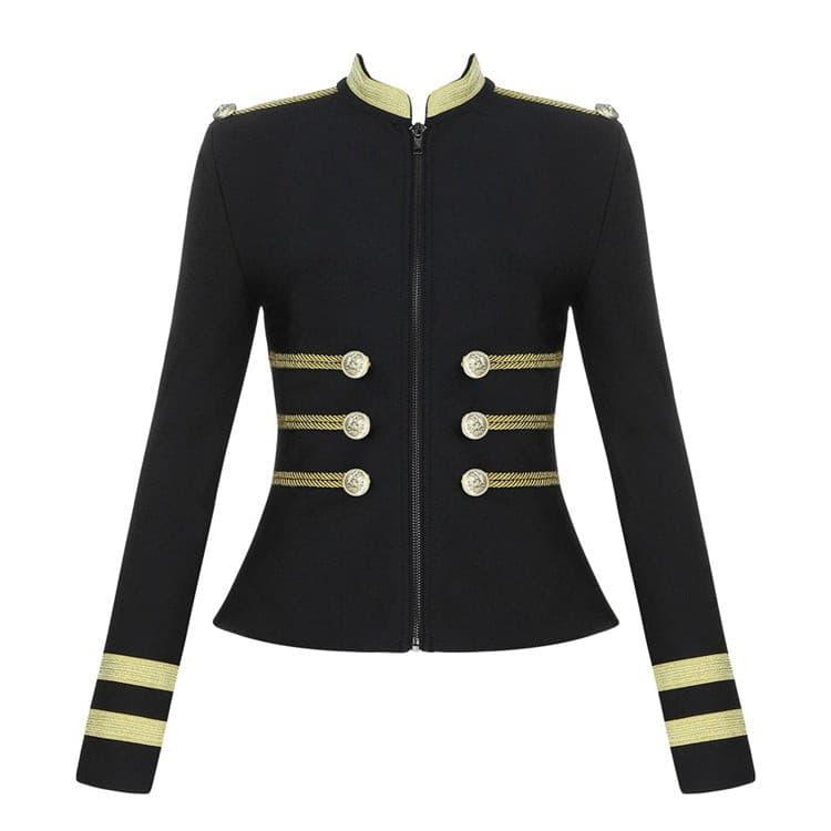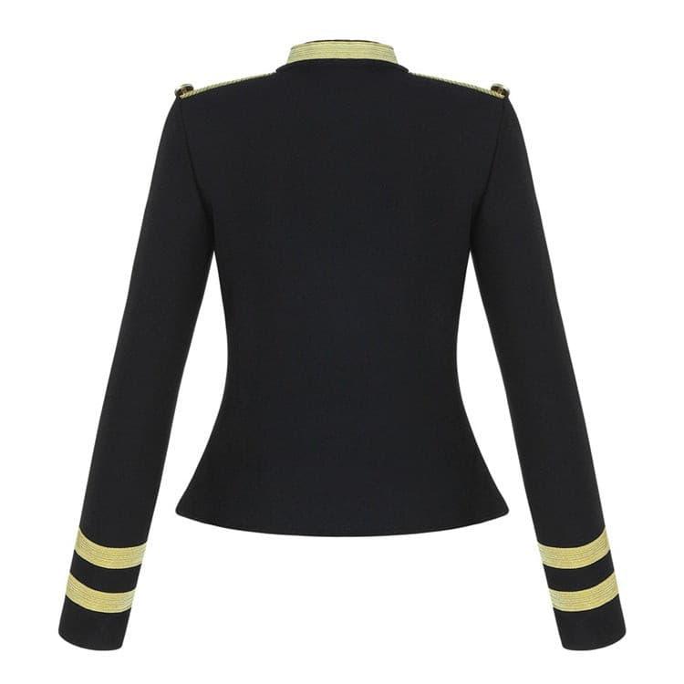 This jacket is the perfect blend of classic style and design. with its black color and gold wire-detailed decorative buttons. The long sleeve provides additional protection. while the craftsmanship of the jacket ensures comfort and durability. Perfect for any event or occasion.
