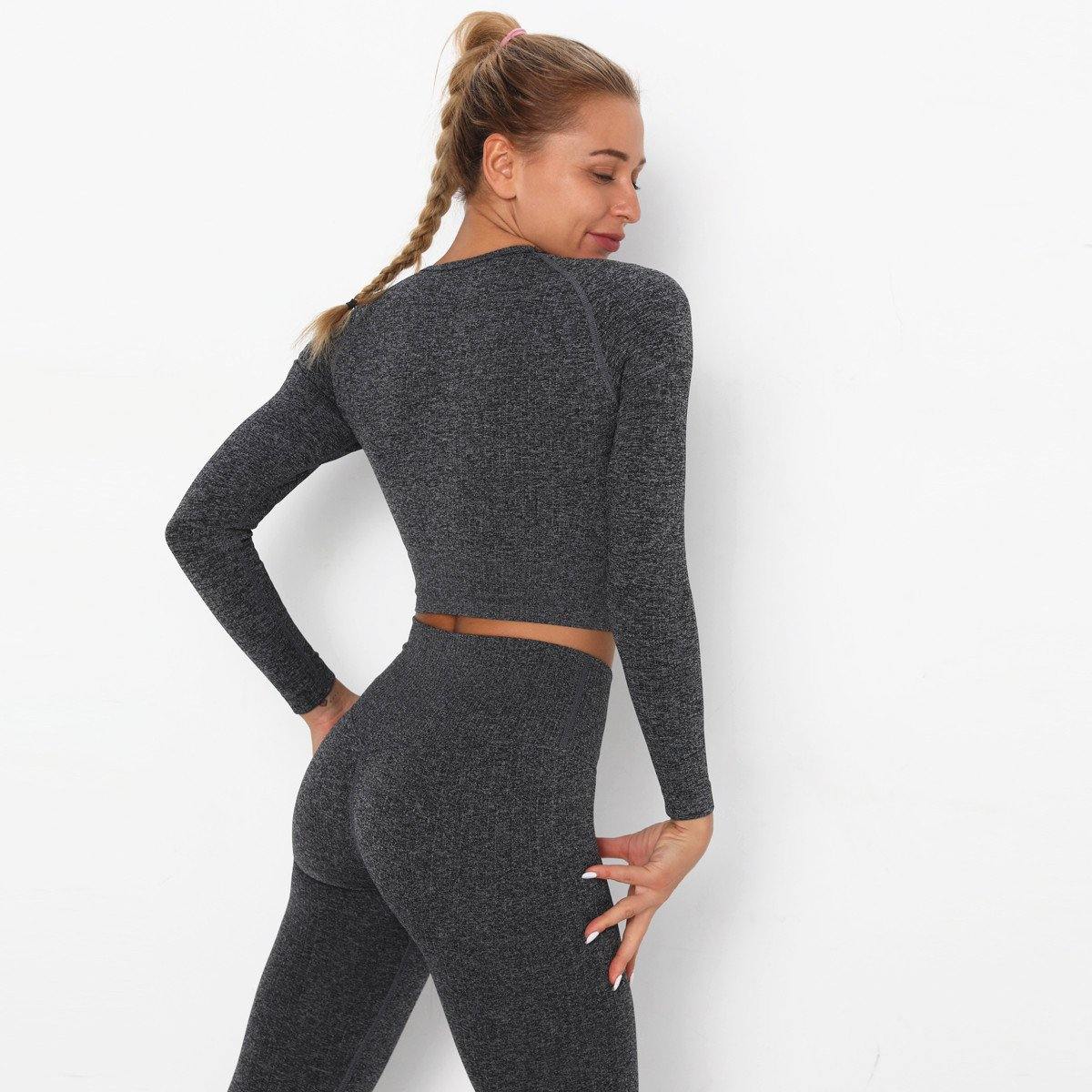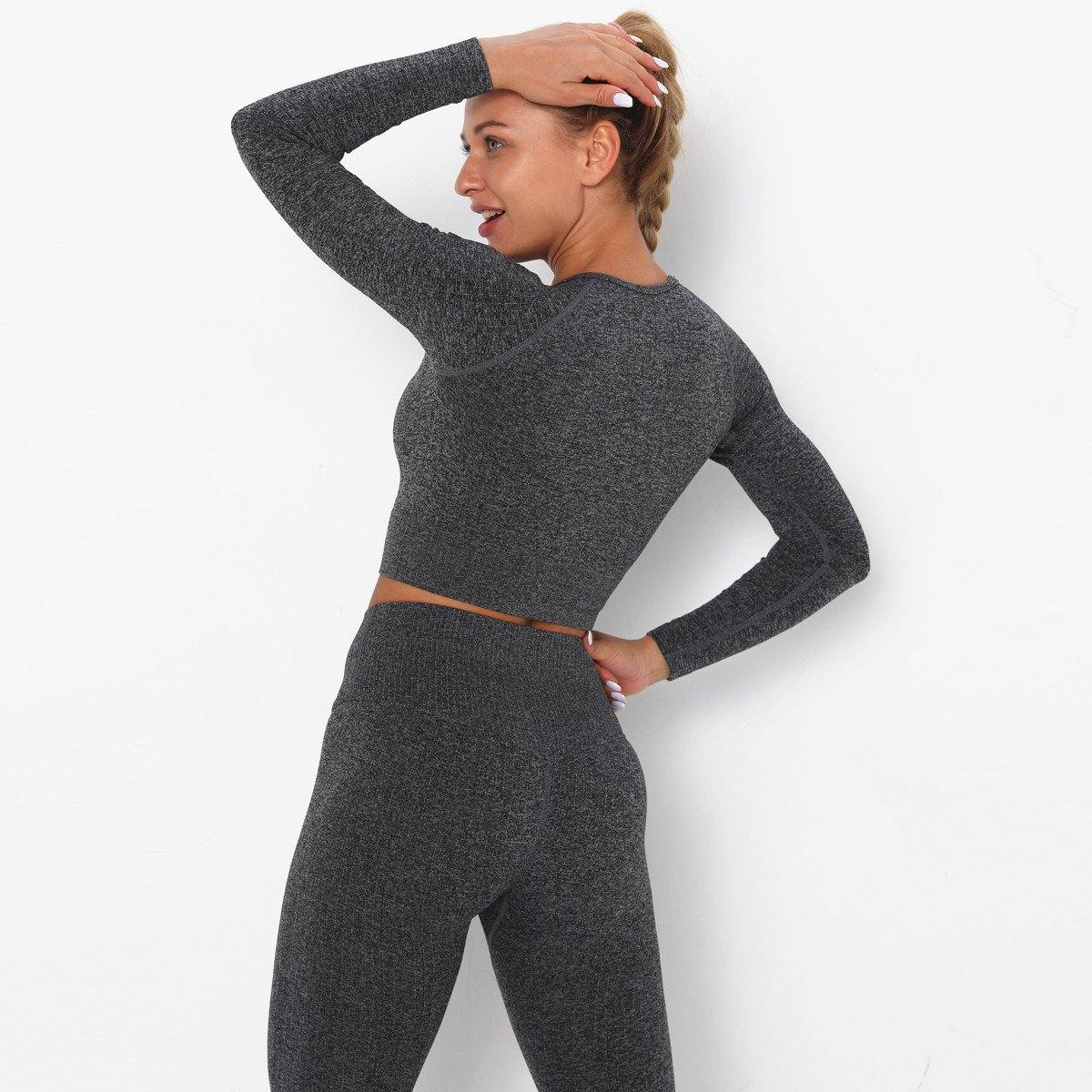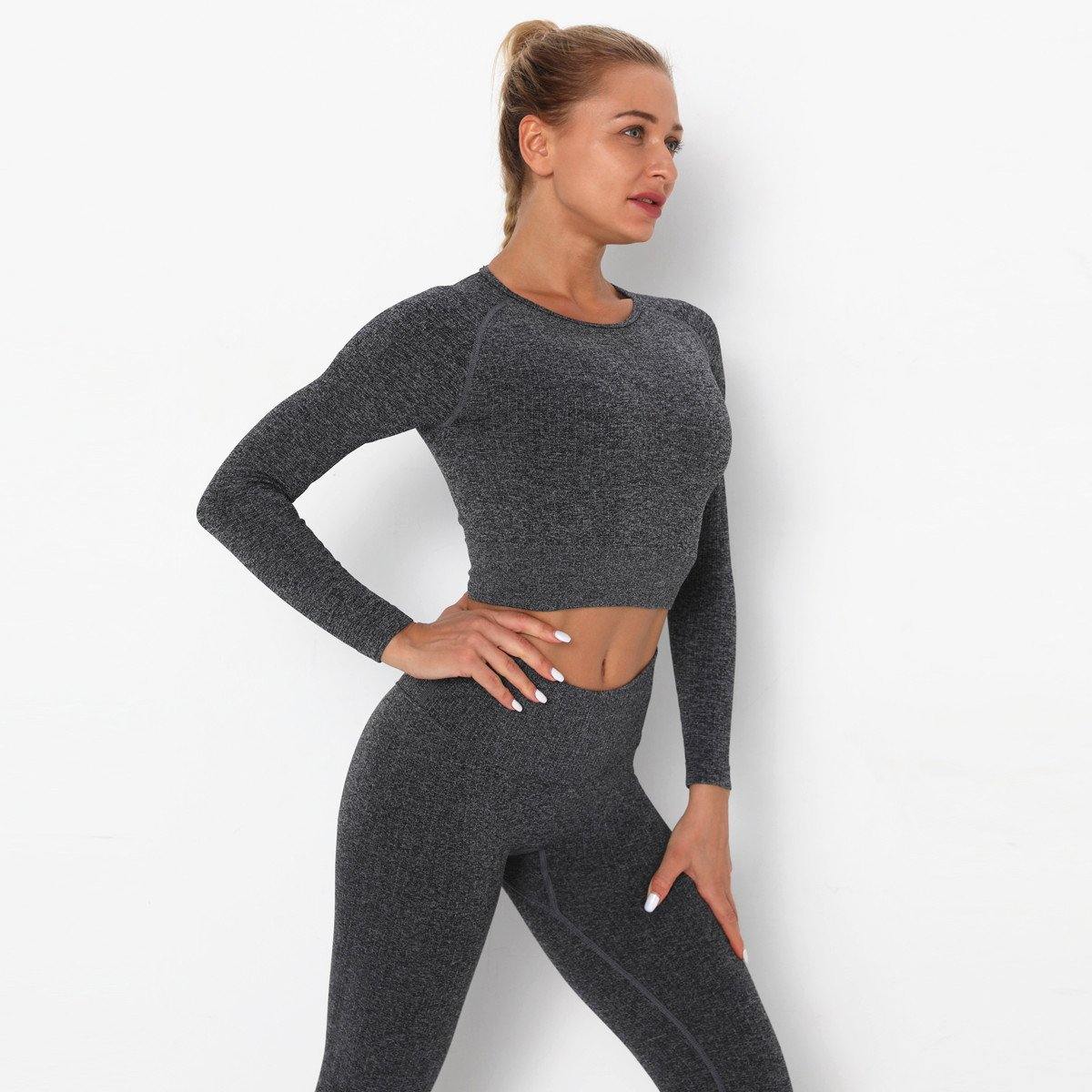 This two-piece yoga set is made of a lightweight. breathable. and stretchy fabric blend. The top's slouchy fit and cropped length enable maximum flexibility. while the leggings provide full coverage with a wide waistband for added support. Perfect for yoga. meditation. or any day-to-day activities.