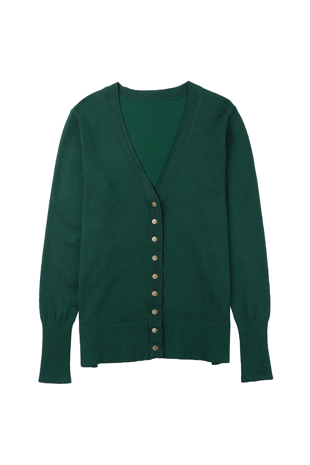 This Green Lightweight Knit Ribbed Trim Snap Button Cardigan is the perfect addition to your wardrobe.