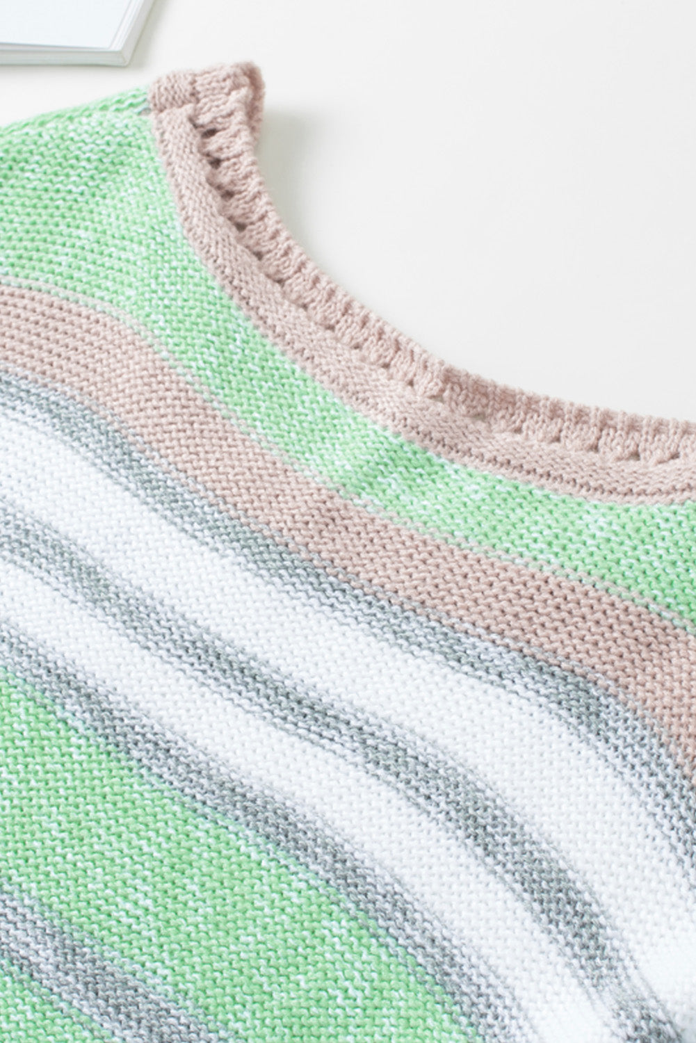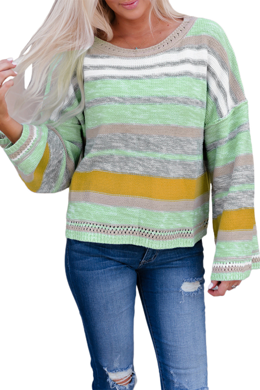 Introducing the Green Striped Bell Sleeves Loose Sweater. the perfect addition to your wardrobe this season.