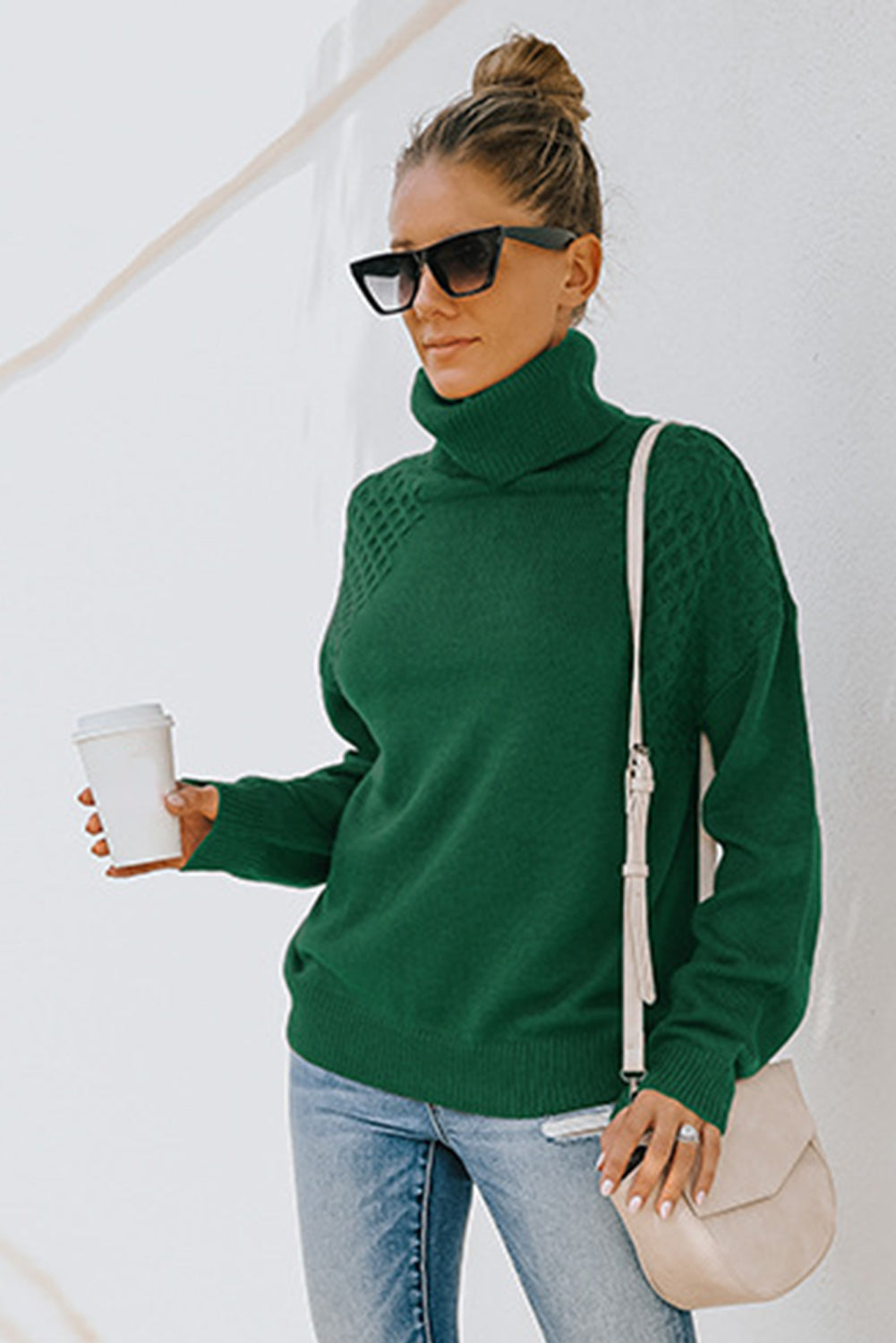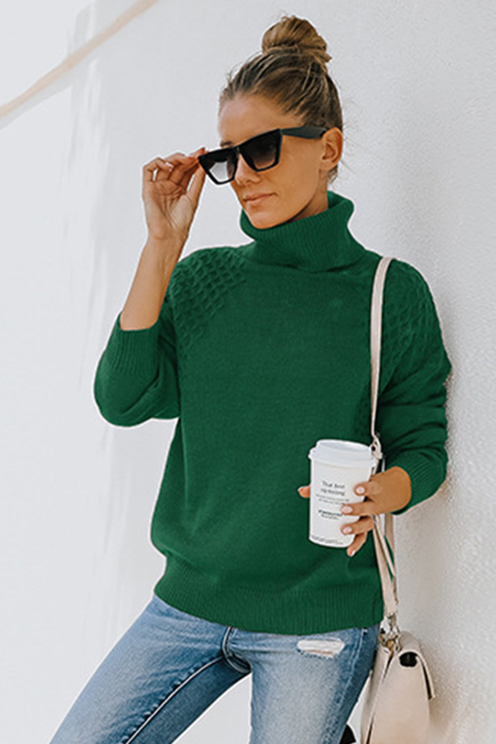 This Green Turtleneck Knitted Pullover Sweater is the perfect addition to your wardrobe.