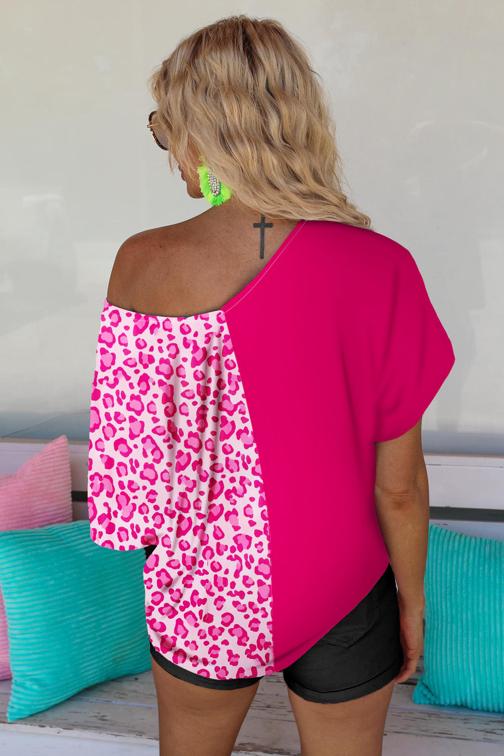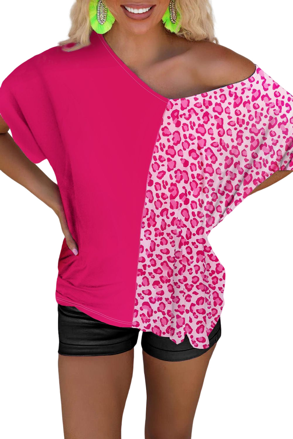 Add an edge to your wardrobe with this one-of-a-kind Half Leopard Patchwork Short Sleeve V Neck Blouse. a combination of timelessness and trendiness.