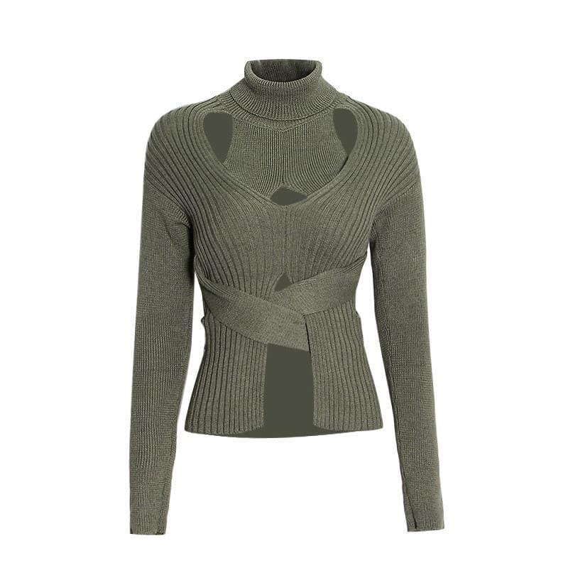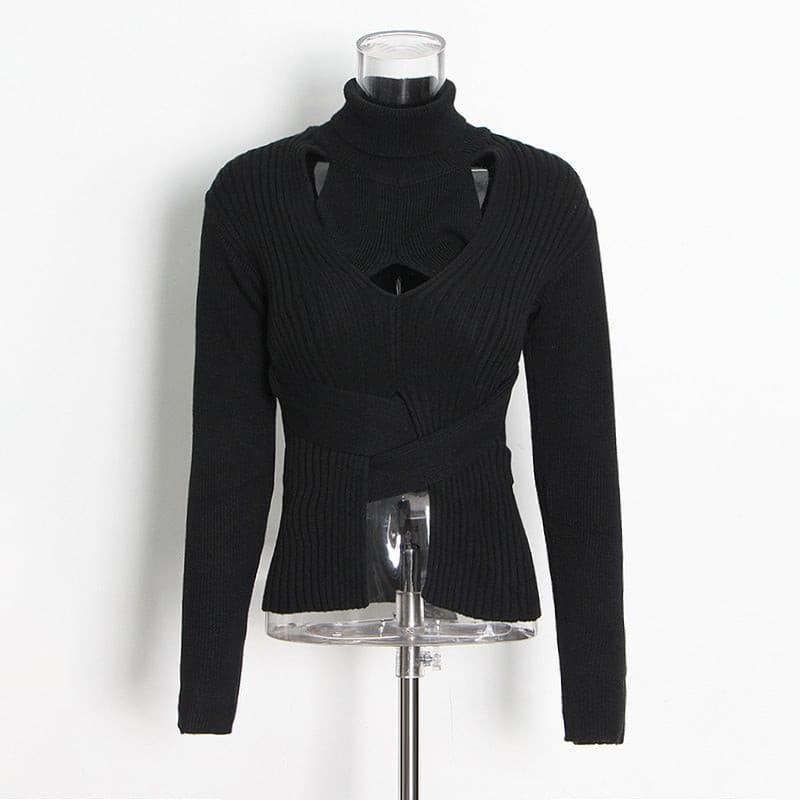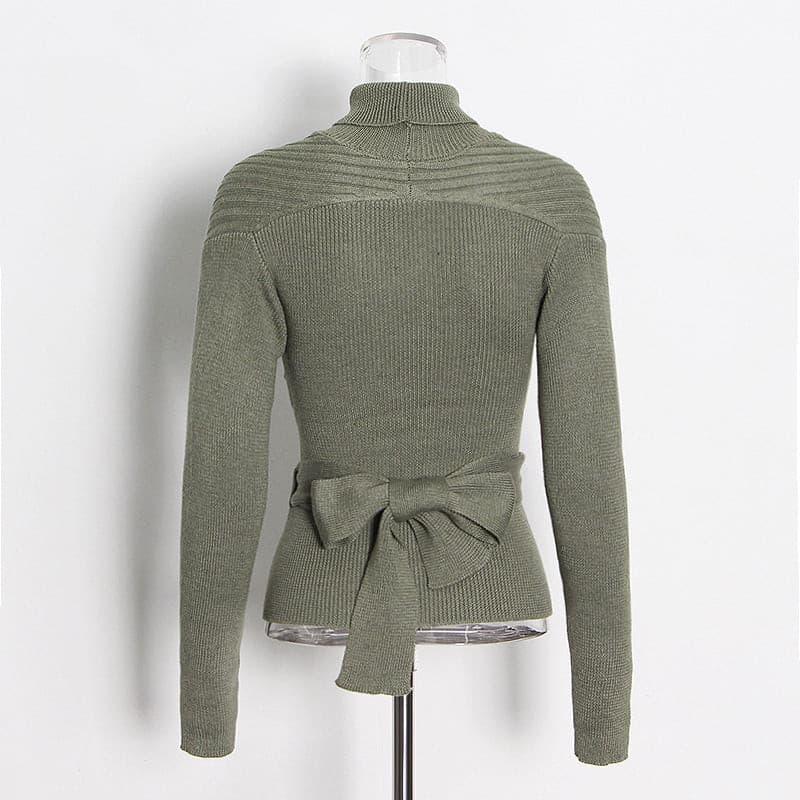This lightweight sweater offers a stylish silhouette along with comfort and versatility. Its hollow high neck tie and elastic slim fit give it a tailored look. while its short design provides an easy-to-manage fit. The breathable fabric is perfect for any season.