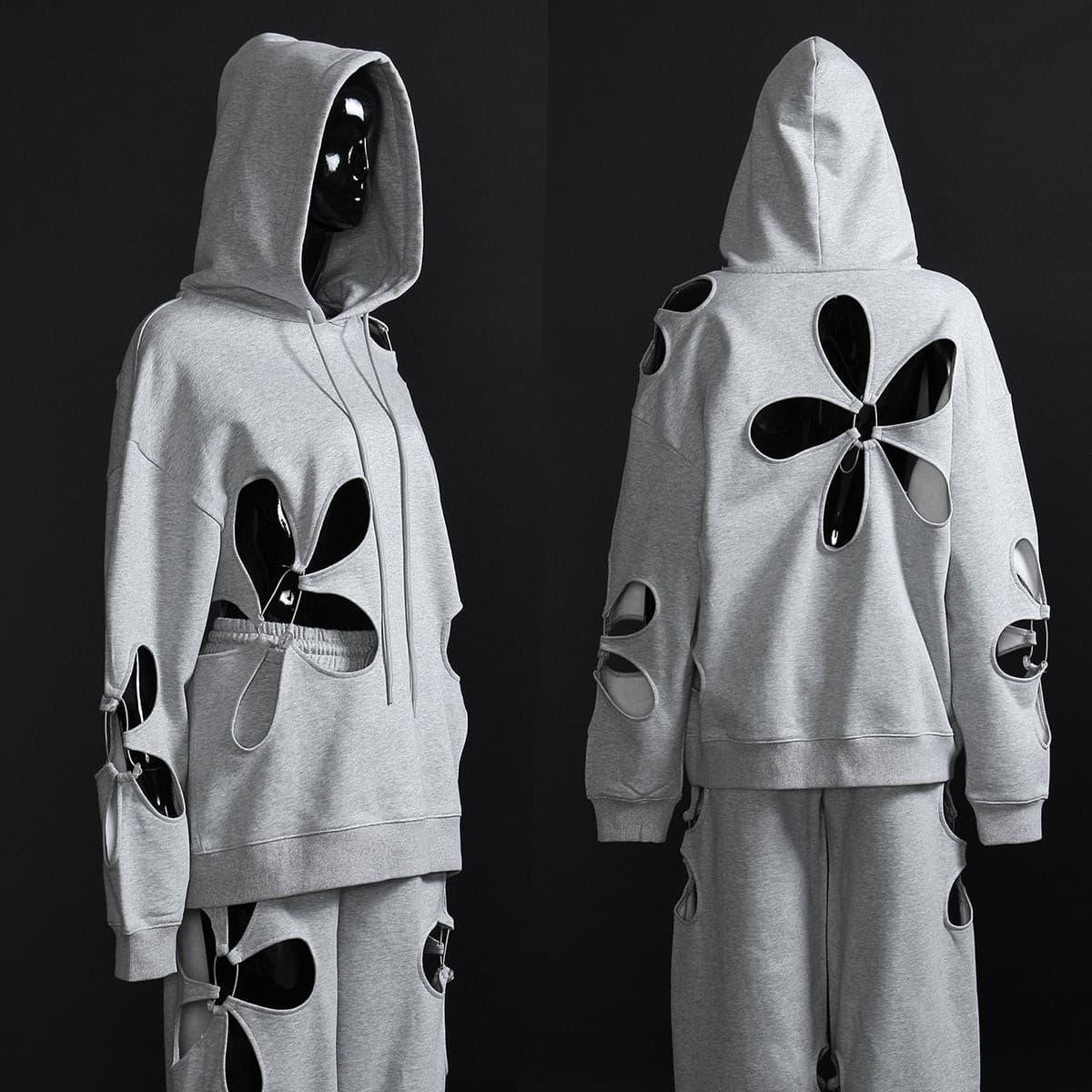 This stunning high-quality casual chandal features a classic hooded design with beautiful hollow petal cut-outs for a unique and eye-catching look. It is designed for maximum comfort and breathability. with a loose fit that is perfect for everyday wear. Crafted from a durable and lightweight fabric. this stylish chandal is the perfect statement piece for any wardrobe.