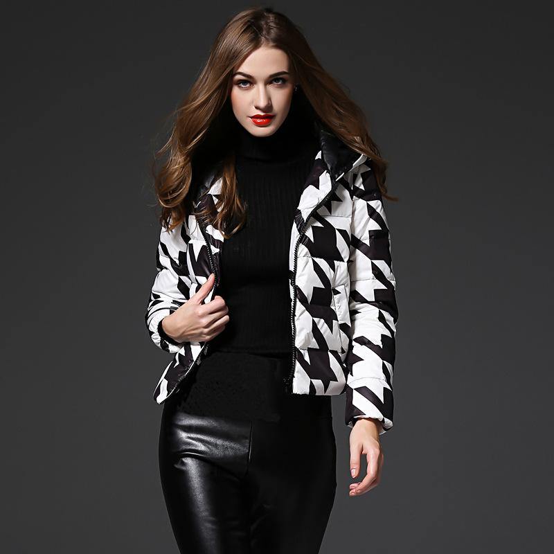 This stylish jacket is made from a premium blend of white duck down. designed to provide reliable warmth and comfort. The houndstooth pattern gives the jacket a classic. timeless look. It's lightweight. easy to wear. and provides superior thermal insulation to keep you warm in all temperatures.