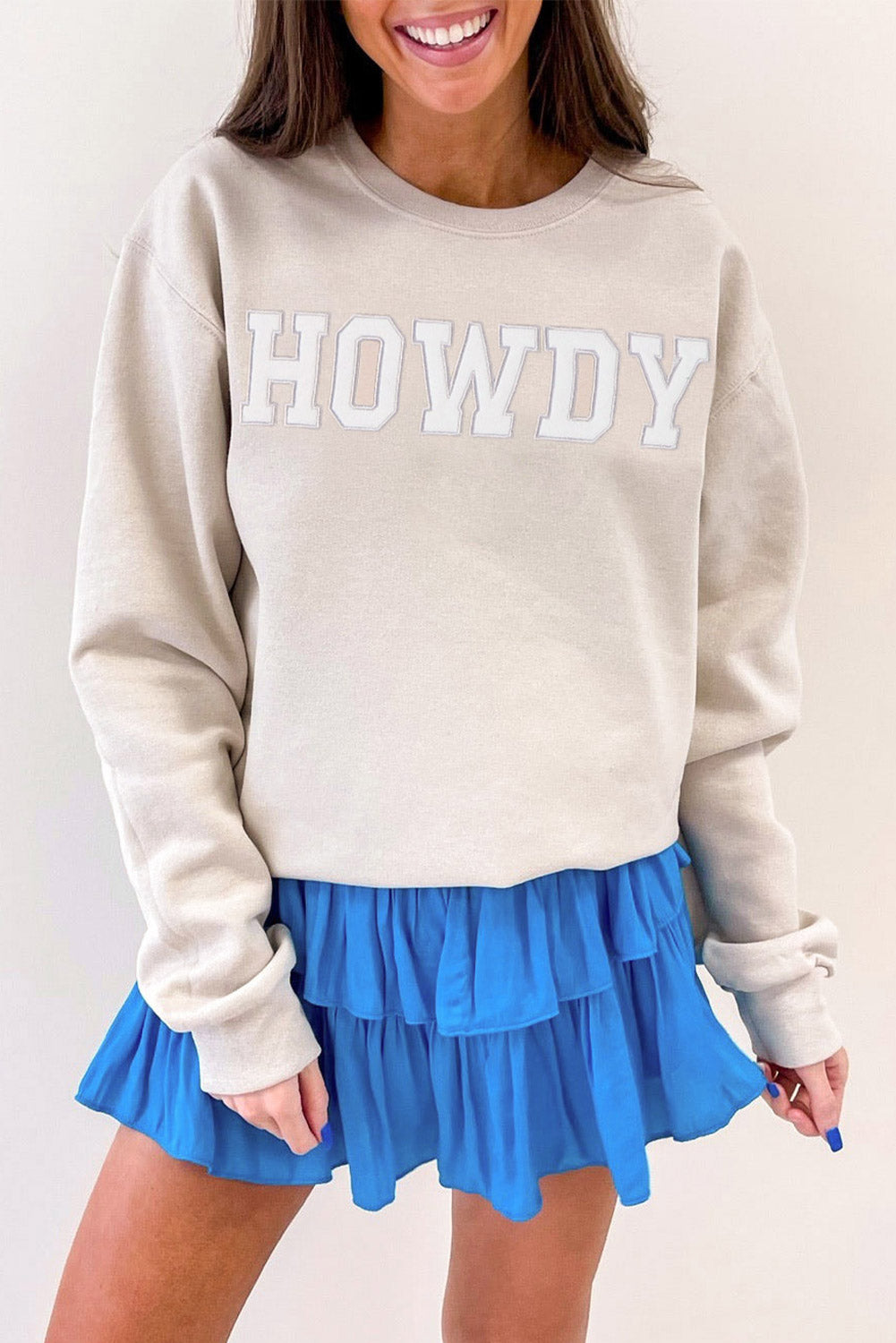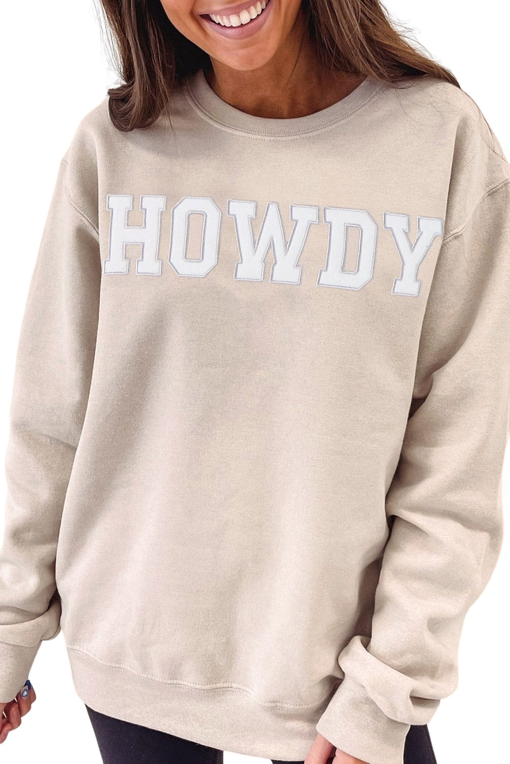 Say hello to effortless style with the HOWDY Graphic Drop Shoulder Sweatshirt. This unique piece delivers comfort and flair. perfect for your casual outings or lounging days.