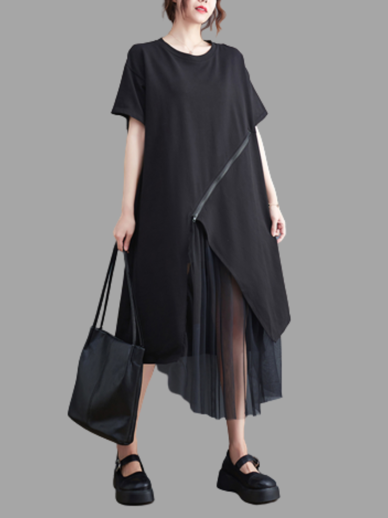 This mid-length dress is made of high-quality cotton material. ensuring comfort and durability. It comes in two classic colors - black and gray - and features a plain pattern. making it a versatile piece that can be paired with various accessories and footwear. The dress has a round neck and short sleeves. providing a comfortable and casual fit. Its mid-length design adds a touch of elegance to the overall style. making it suitable for both formal and casual occasions. The high-quality cotton material ensures breathability. making it a suitable choice for all seasons. This dress is a must-have for anyone looking for a comfortable and versatile piece that can be dressed up or down for various occasions. Its classic design and high-quality material make it a timeless addition to any wardrobe.