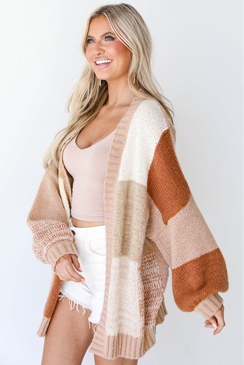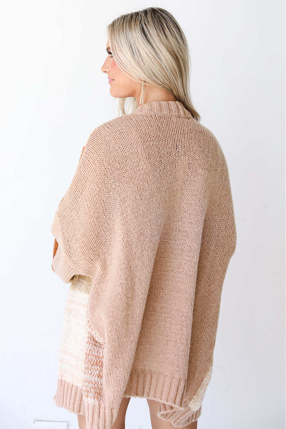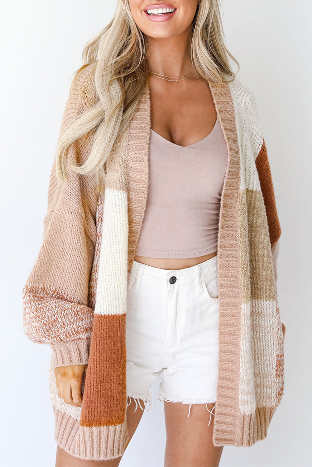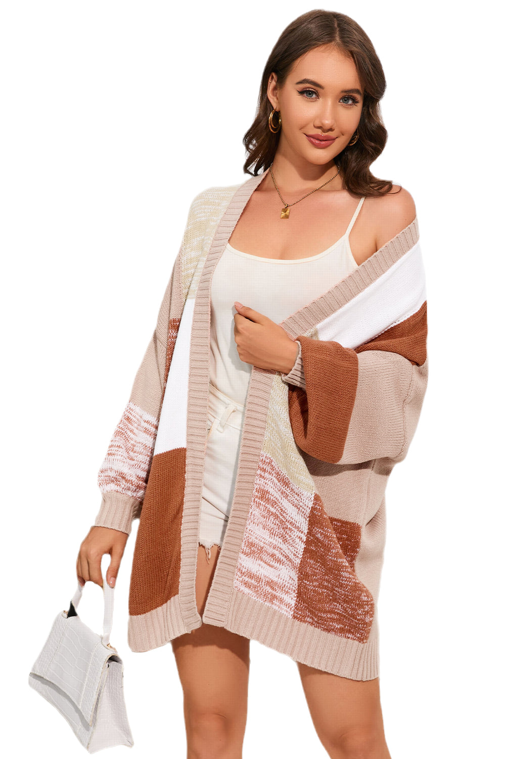 Stay cozy and stylish in this Khaki Checkered Pattern Open Front Drop Shoulder Slouchy Cardigan.