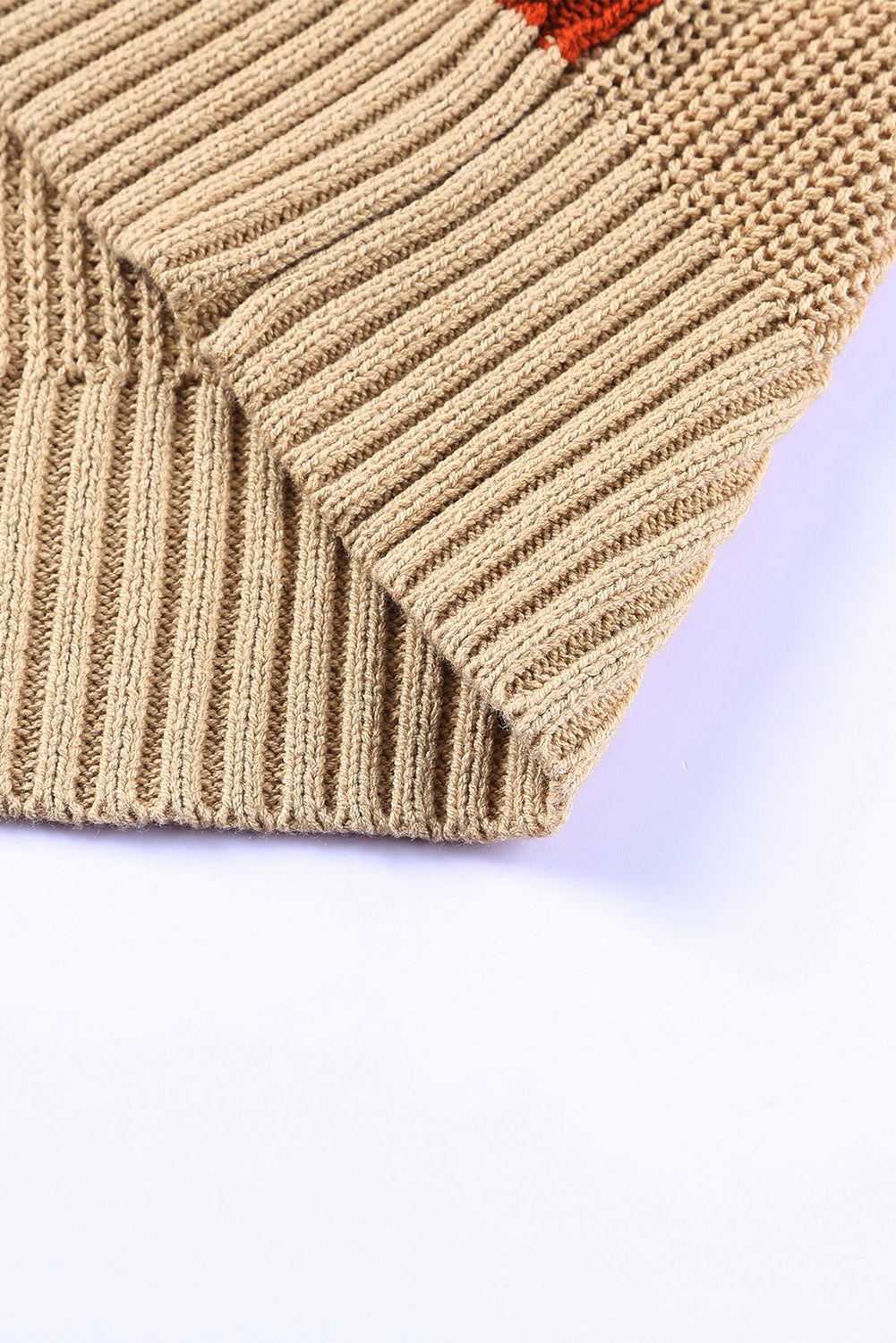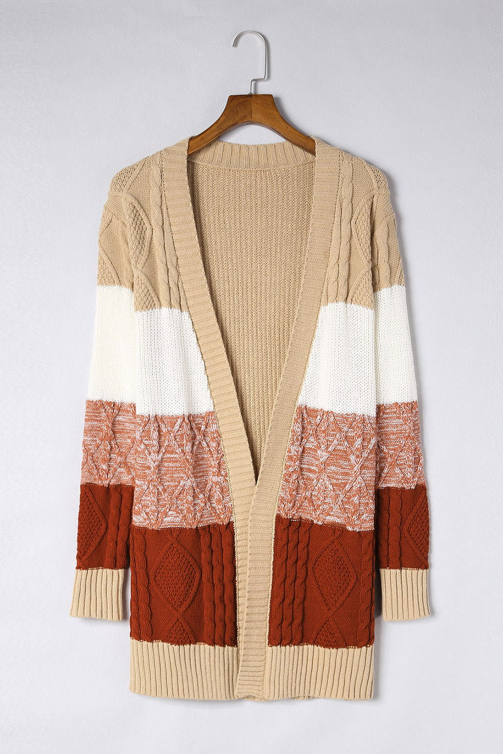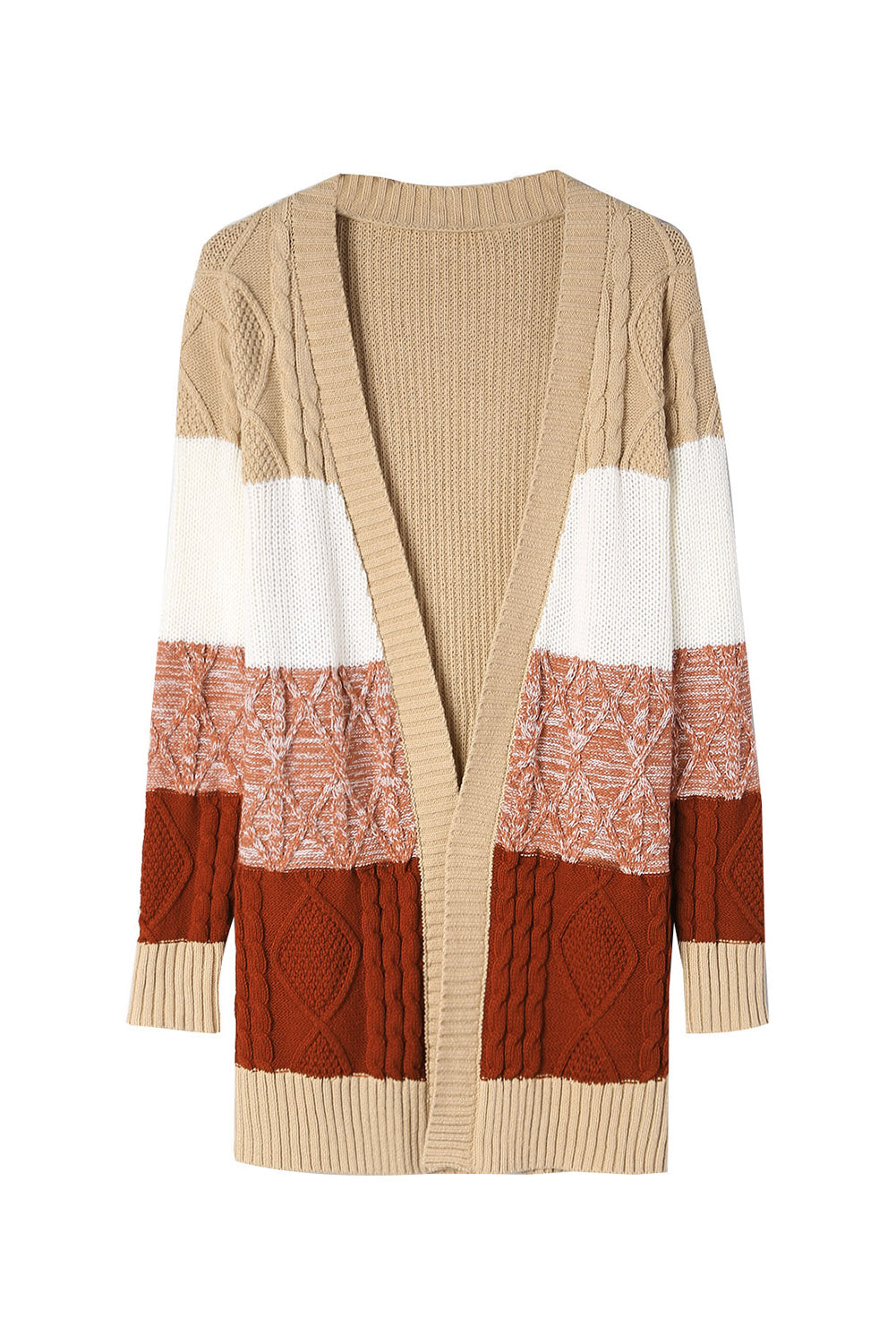 Shop now and add a touch of style to your wardrobe with the Khaki Color Block Long Sleeve Open Front Cardigan Sweater.