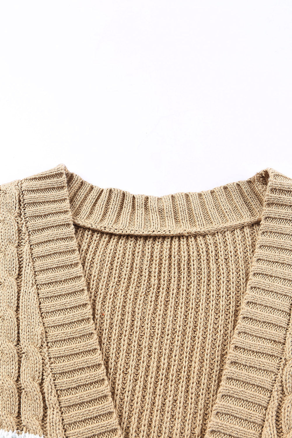 Introducing the Khaki Color Block Long Sleeve Open Front Cardigan Sweater! This stylish and comfortable sweater is perfect for any occasion.