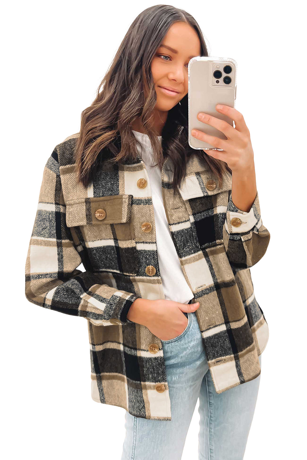 Unveil your trendsetting style with the Retro Plaid Button Flap Pocket Shacket. Made from 100% Polyester. this retro-inspired piece combines the casual comfort of a shirt with the warmth of a jacket. encapsulating the best of both worlds.
