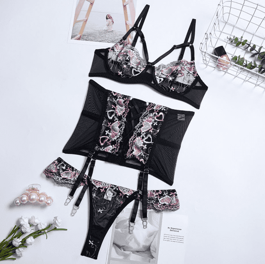 This set combines function and fashion elegantly. with delicate lace stitching and a secure hold. The strong elastic webbing is designed to provide excellent support and fit. making it perfect for everyday wear. Each set includes a lace top garter. suspender belt. and thigh garter. Experience supreme comfort and confidence with this timeless three-piece set.