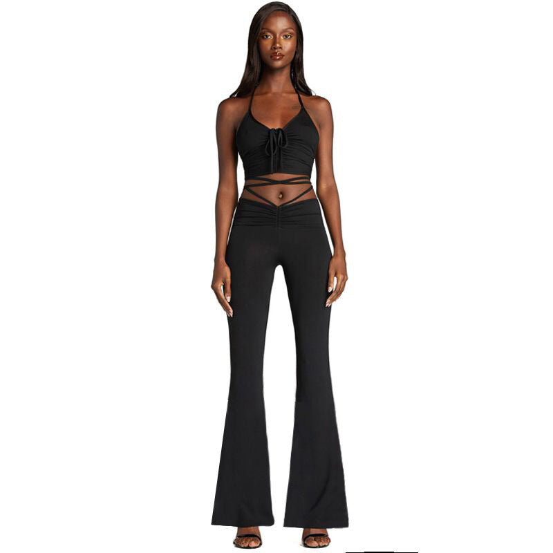 Unleash your bold and confident side with our Lace-up Crop Top and Pleated Pants Two-Piece Set. The stylish crop top features a lace-up design for a touch of edge. while the pleated pants provide maximum comfort and movement. Perfect for any occasion. this set will elevate your wardrobe and turn heads everywhere you go!