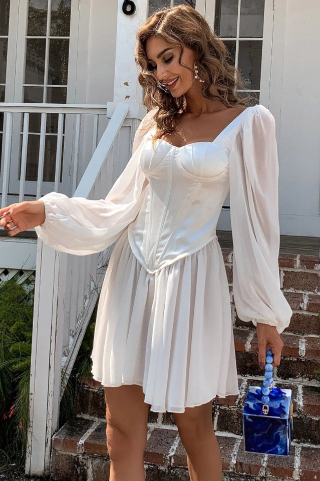 This A-line garment features a classic square neckline as well as long lantern sleeves. designed for a regular fit with luxurious satin fabric.
