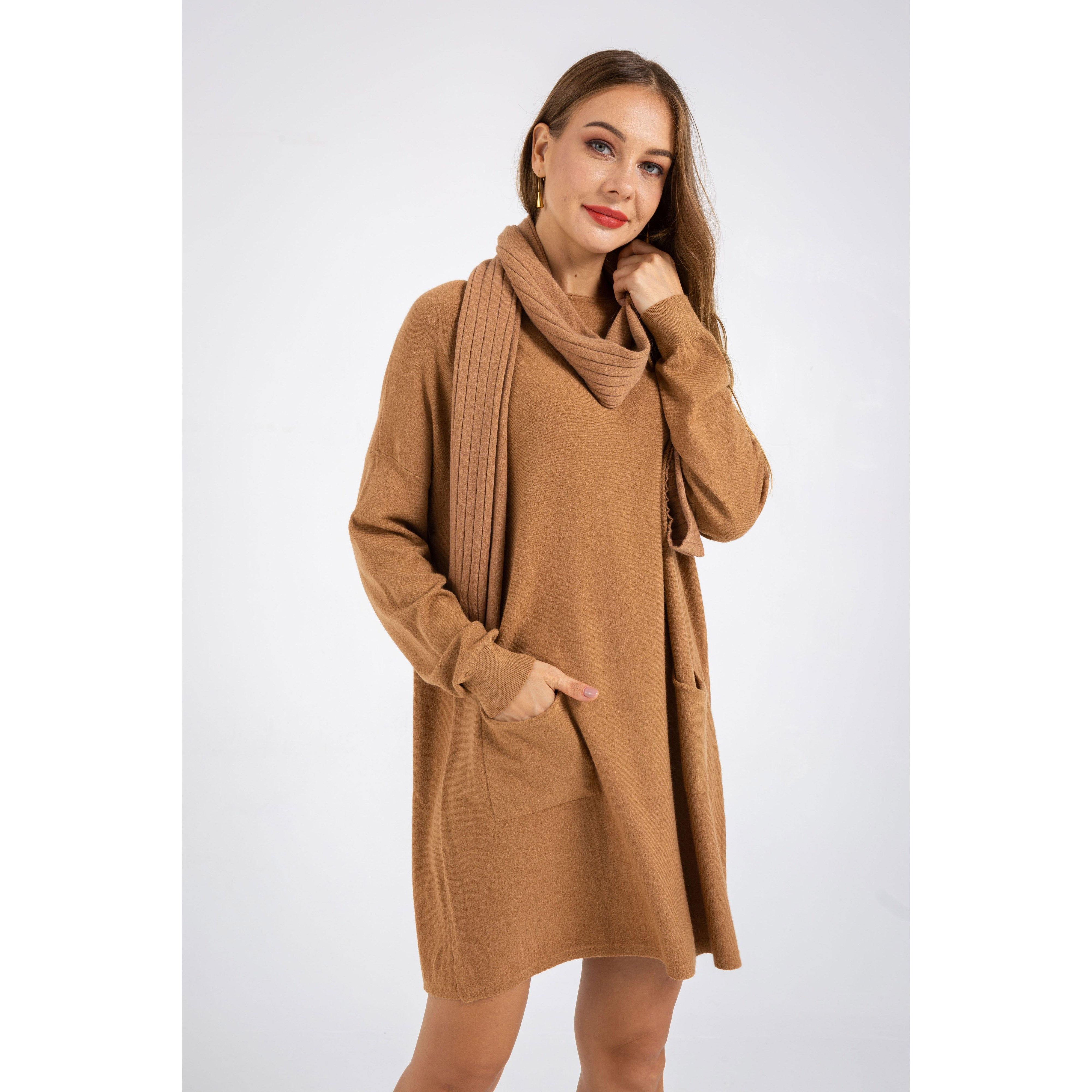 Long Sleeve Dress Knitted Sweater and Scarf