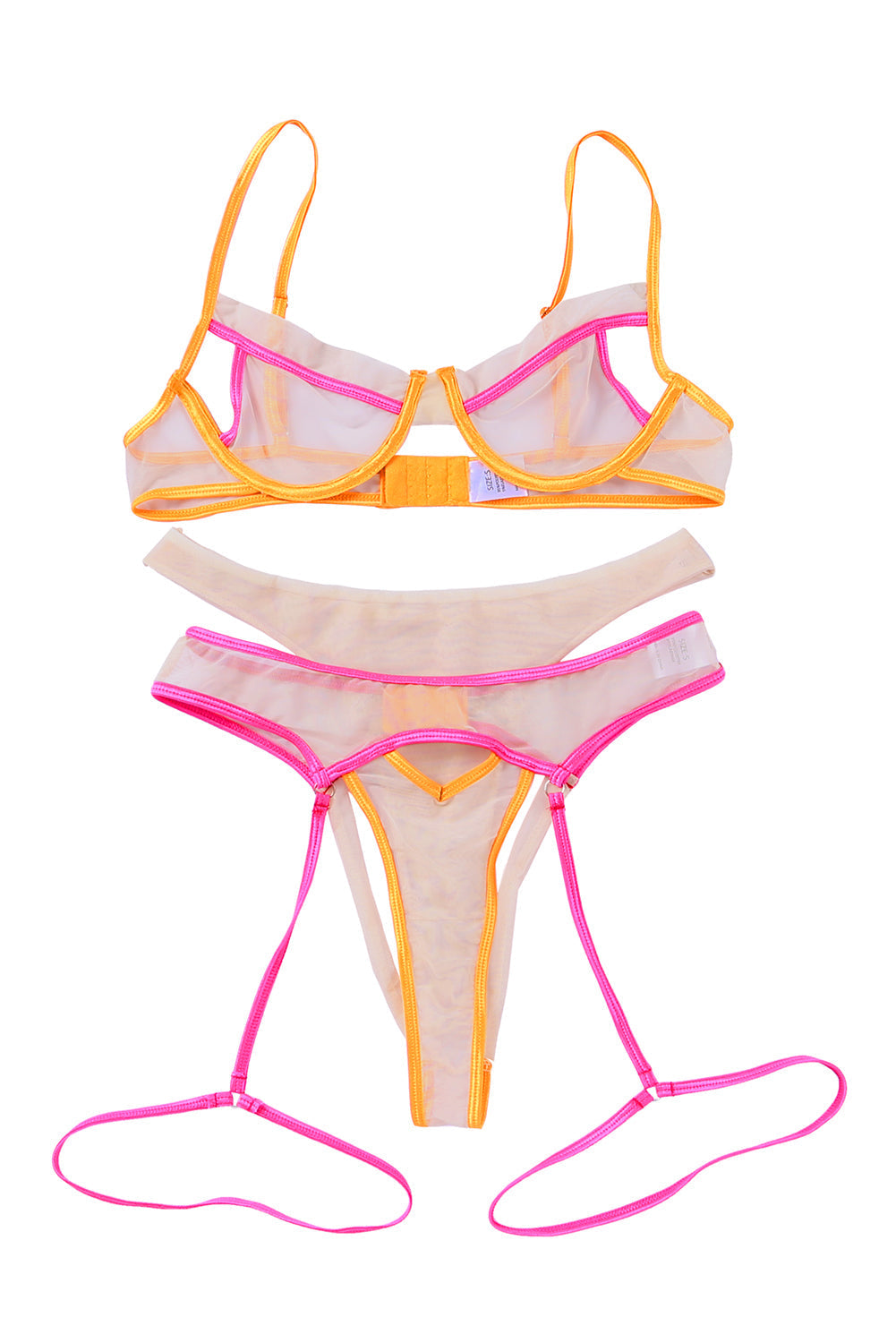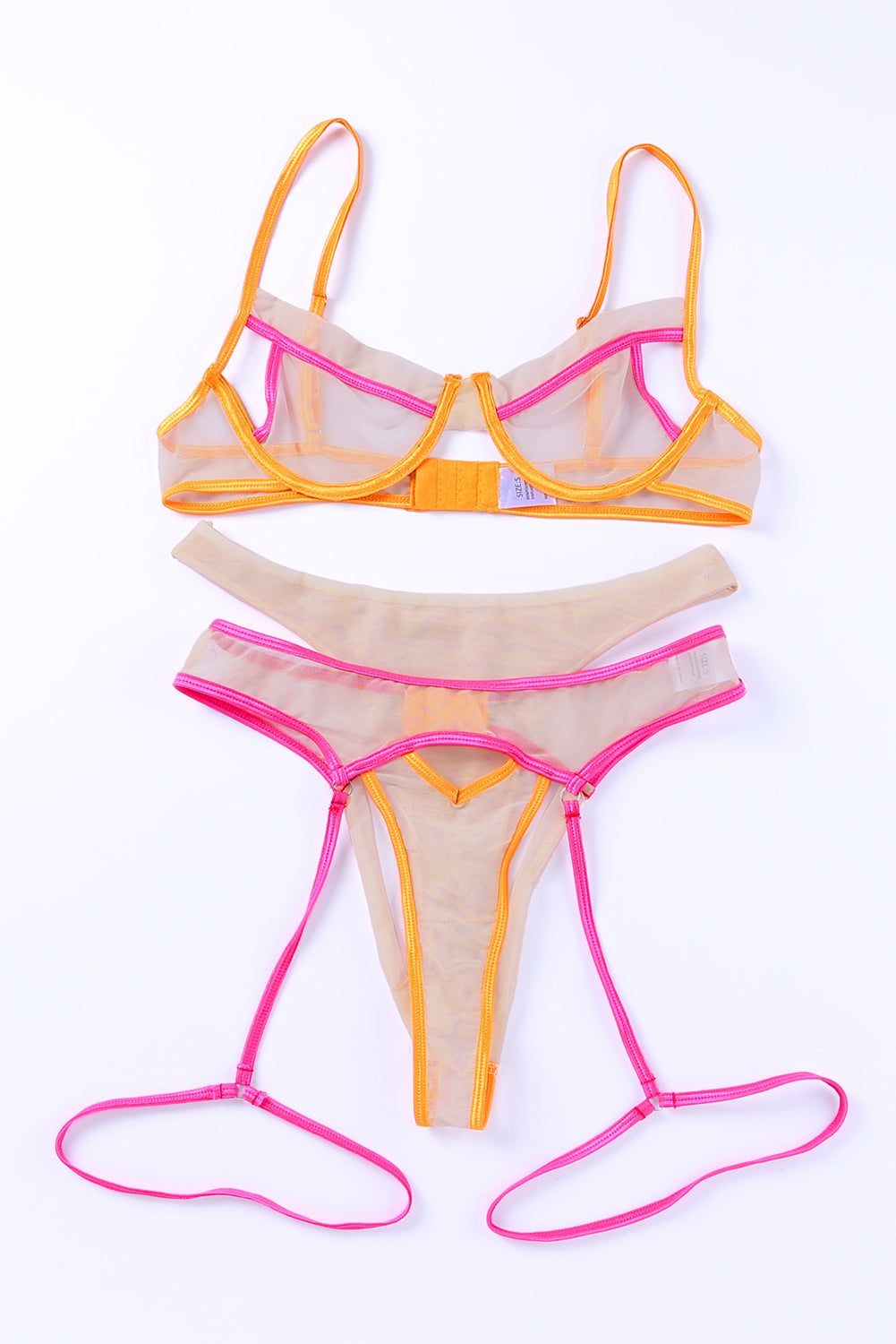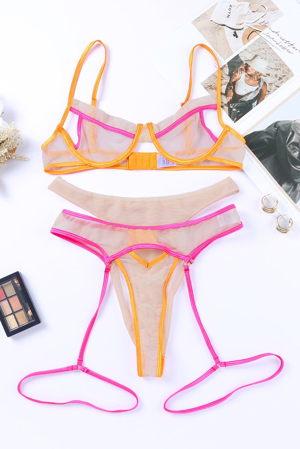 This Multicolor Colorblock Trim Spaghetti Strap Three Piece Lingerie Set is the perfect addition to any wardrobe.