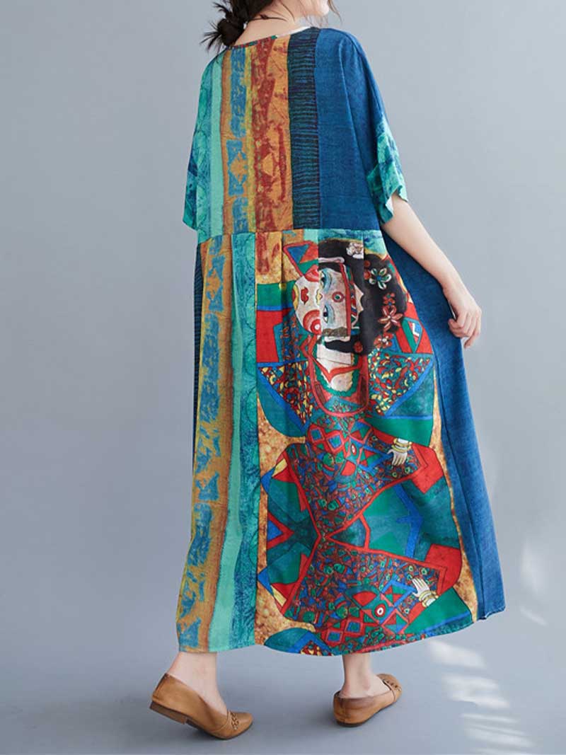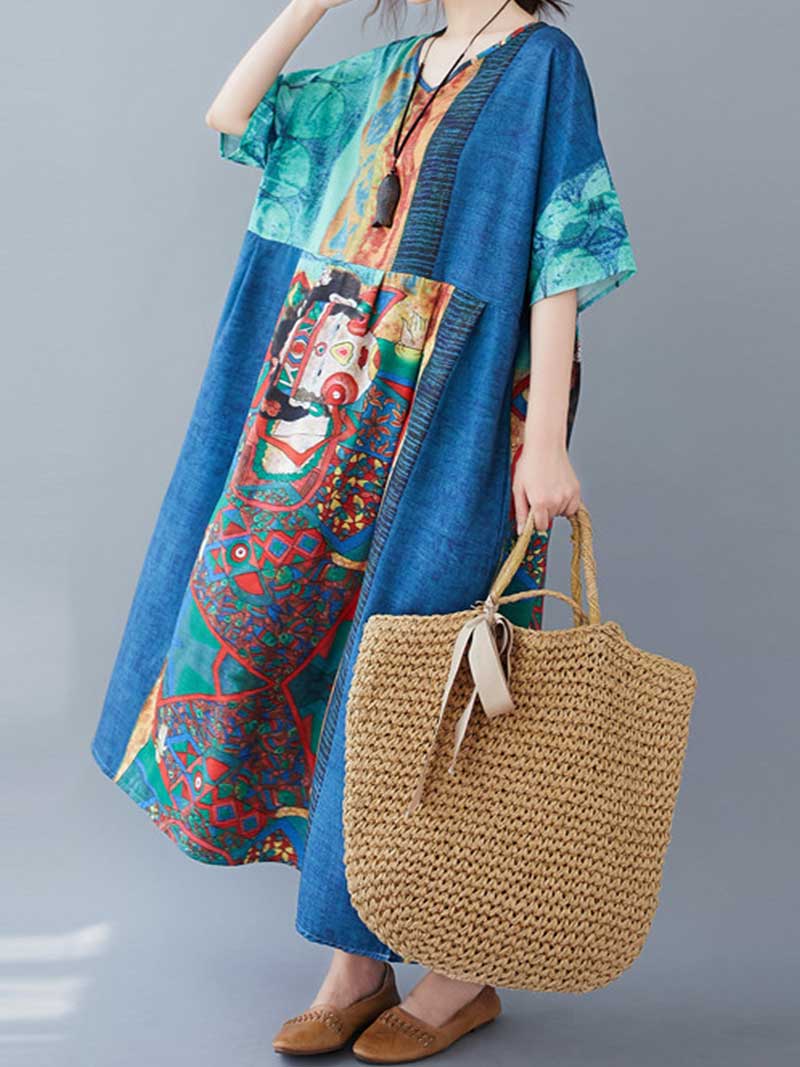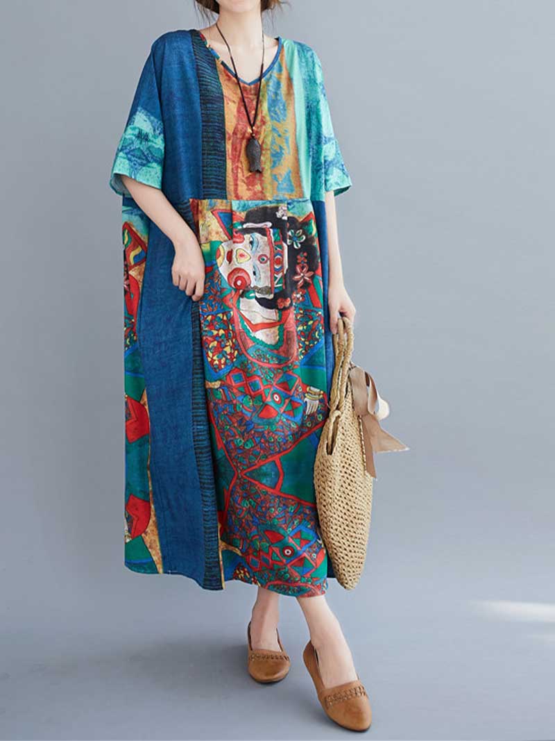 This dress is perfect for anyone with a positive outlook on life. It's made of cotton and features a playful printed pattern. The loose fit is comfortable and breathable. making it perfect for summer weather. Short sleeves keep you cool. while the bright colors add a touch of fun to your day.