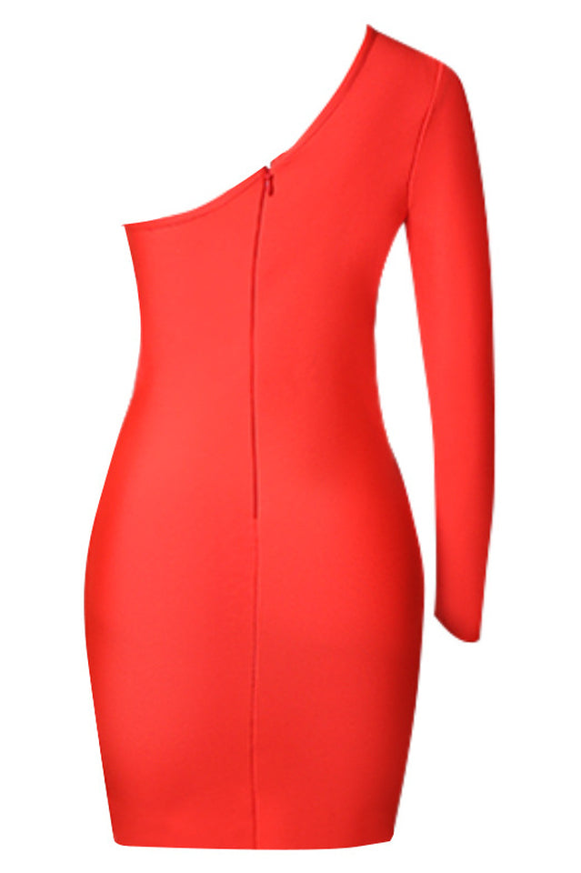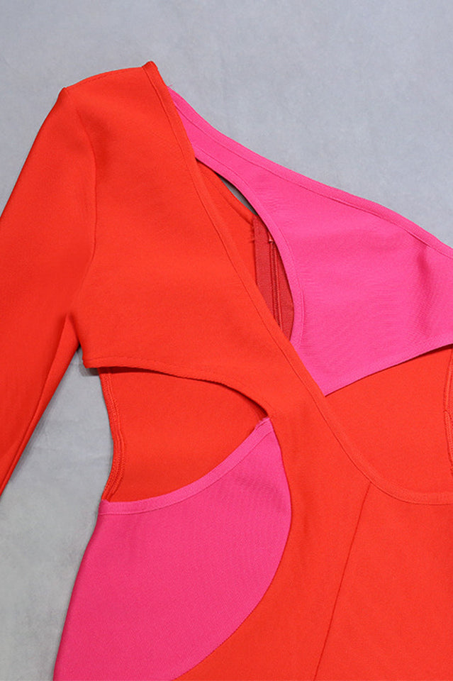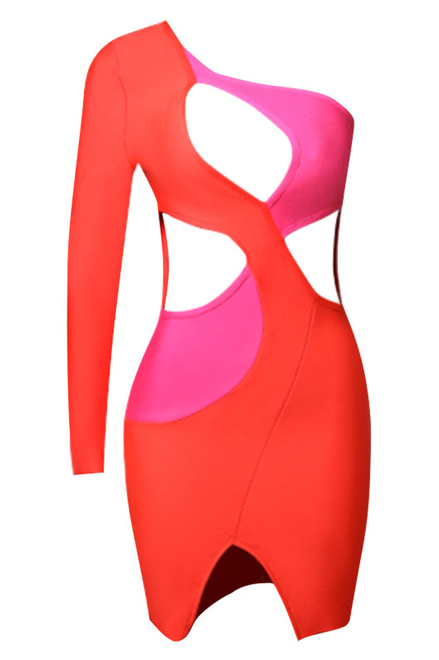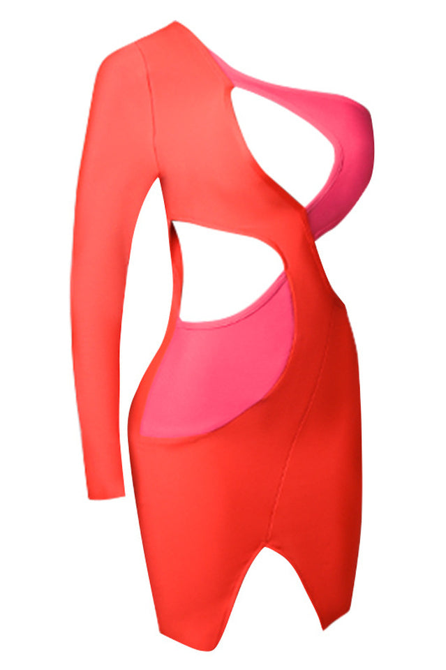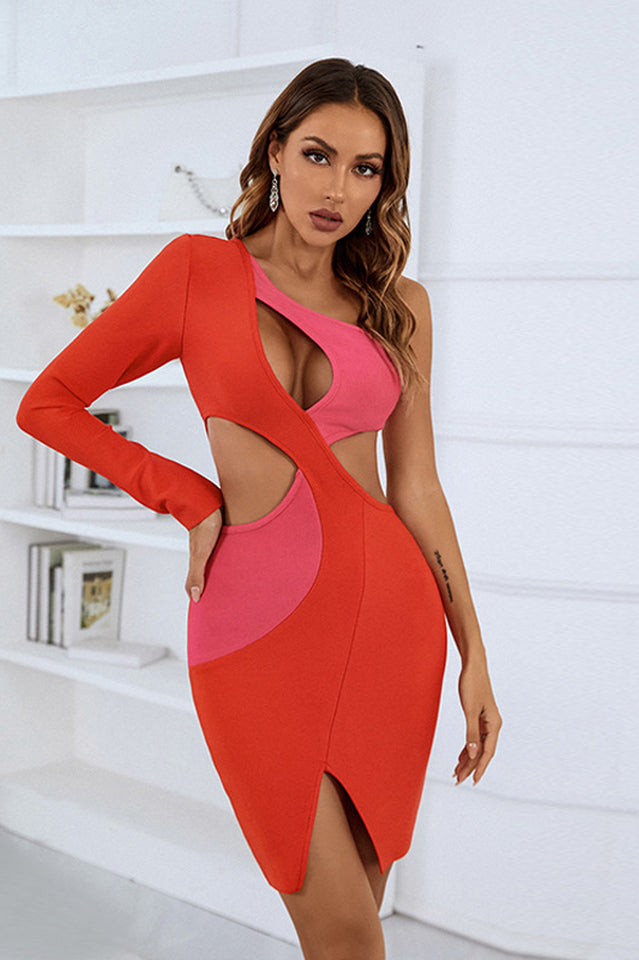 Enhance your visual appeal in this sexy form creation by Lennon dress. The dress is tailored in an asymmetrical neckline in a one shoulder long sleeve. This traverses to the mid-open front and both side parading a cutout design. The dress is designed with bandage seams to accentuate your curves and skirt part hem in a short slit. Incessantly attract the crowd while wearing this Lennon cut out dress ensemble.