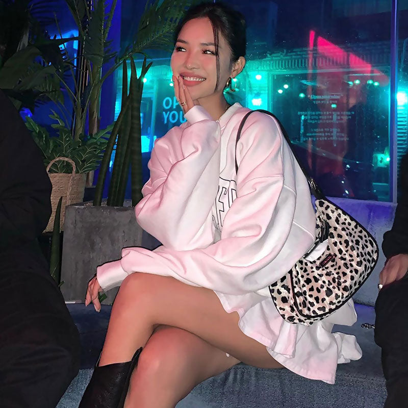 Let your breezy side shine out with this beautiful and fun oversized sweatshirt. Made of blend acrylic and polyester. stand out in capital lettering details across the chest. featuring a round neckline. dropped shoulders structured with long sleeves. a pullover styling outlined with ribbed details. a roomy silhouette finished with a slightly long length. Find more trendy women's pullover sweatshirts or unique clothing in our boutique. and complete a unabashed look with a pair of knee-high denim boots.