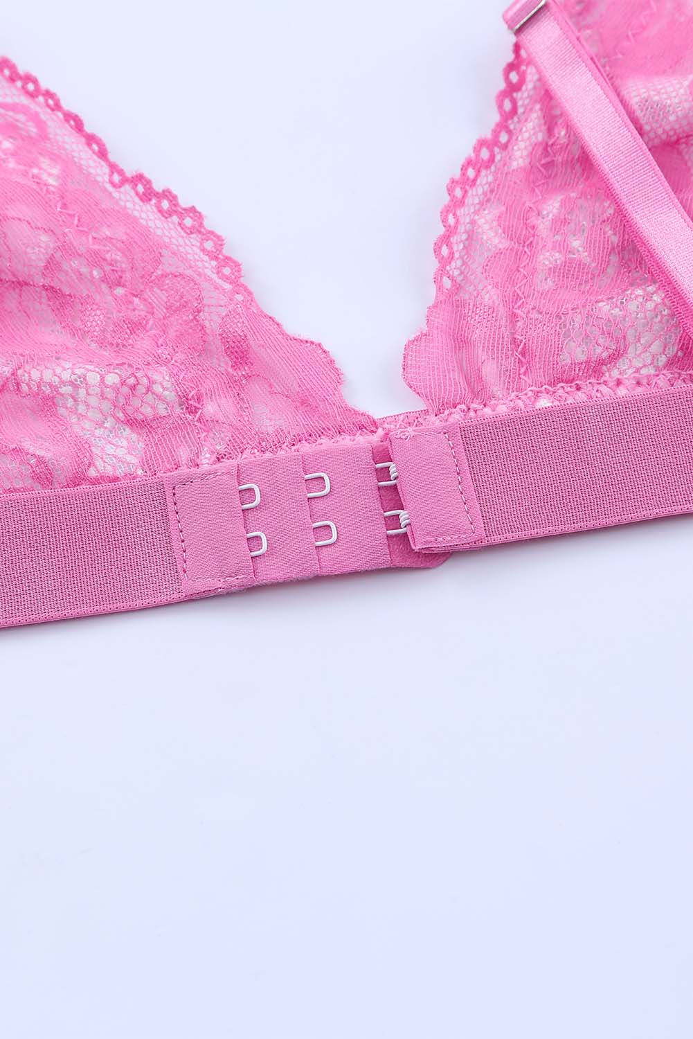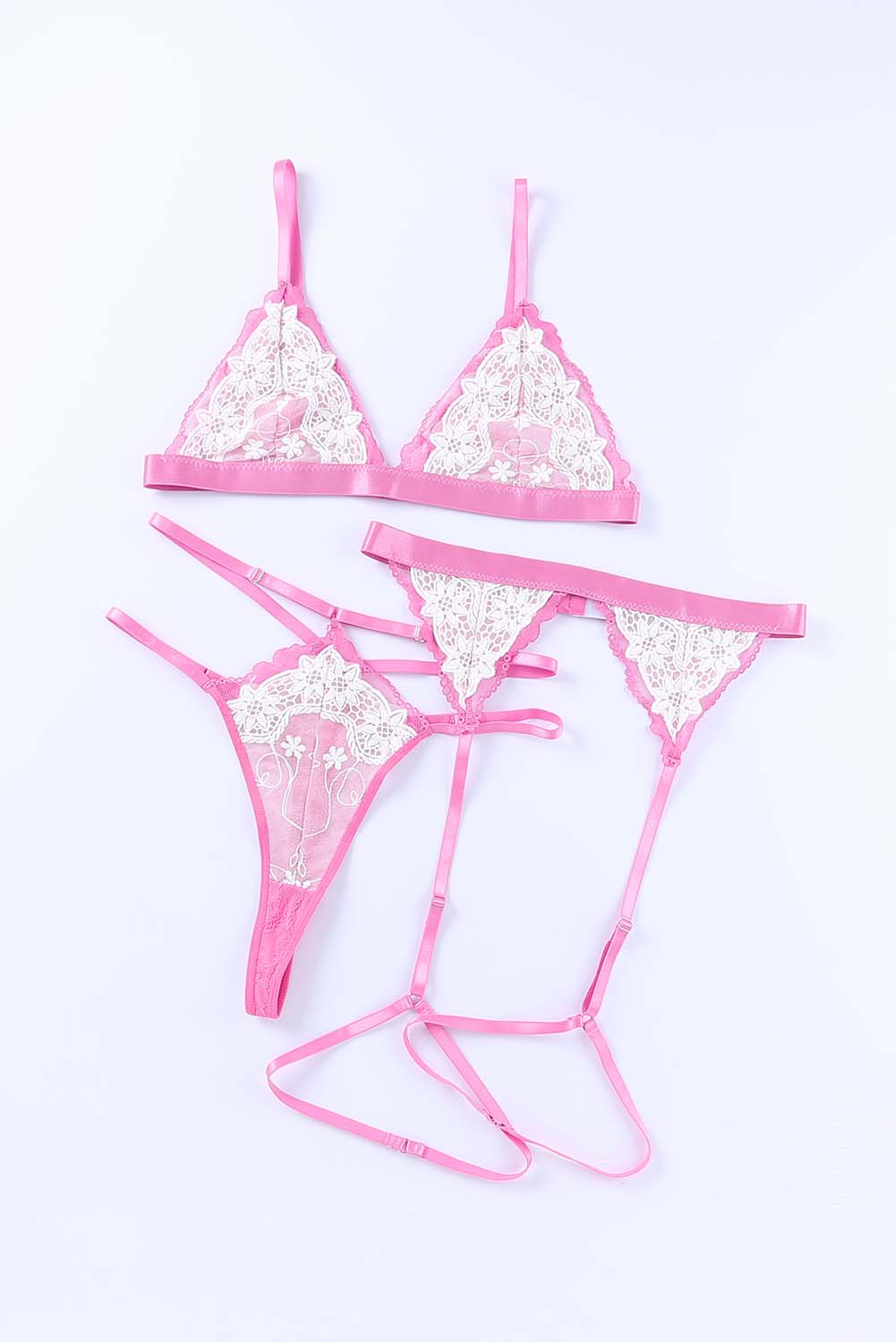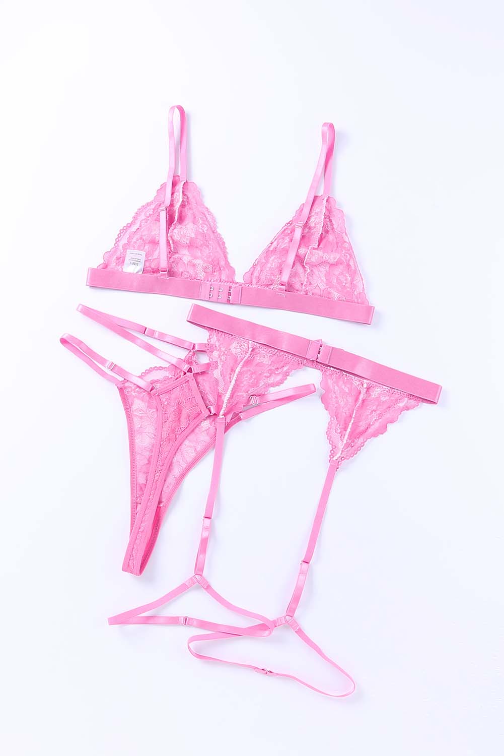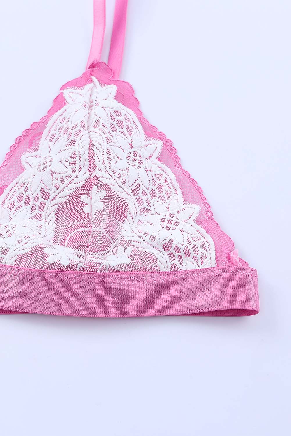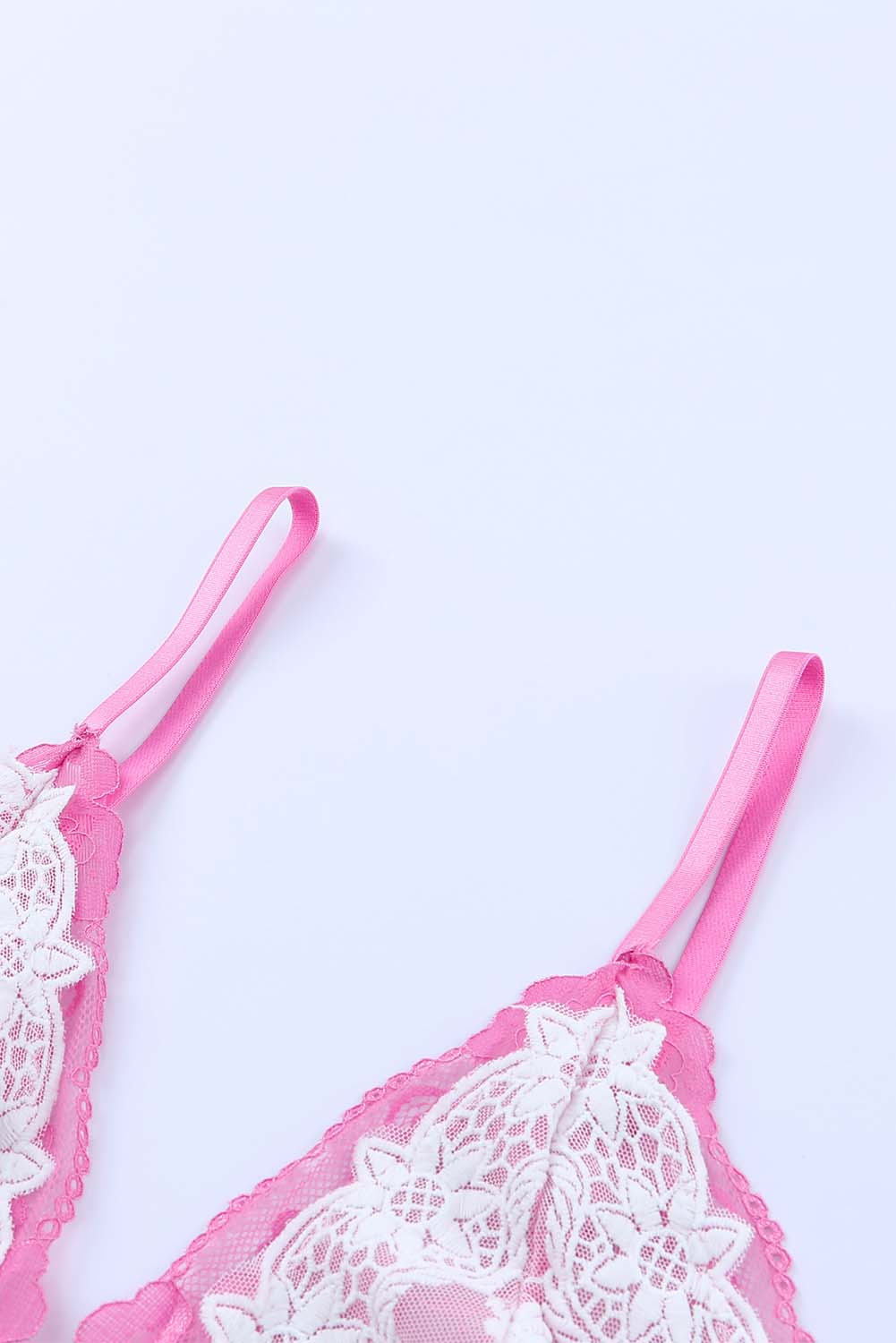 This Pink 3Pcs Color Block Lace Bralette Lingerie Set is the perfect addition to any lingerie collection.