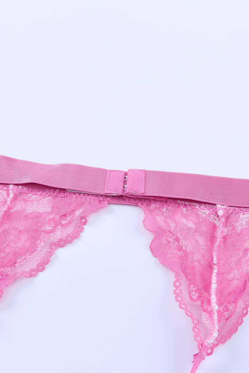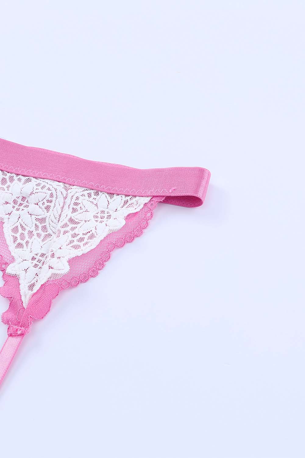 Whether you're looking for something to wear for a romantic night in or a special event. this Pink 3Pcs Color Block Lace Bralette Lingerie Set is the perfect choice.