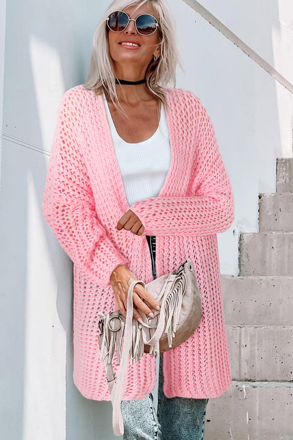Pink Open Knit Long Sleeve Oversized Cardigan
