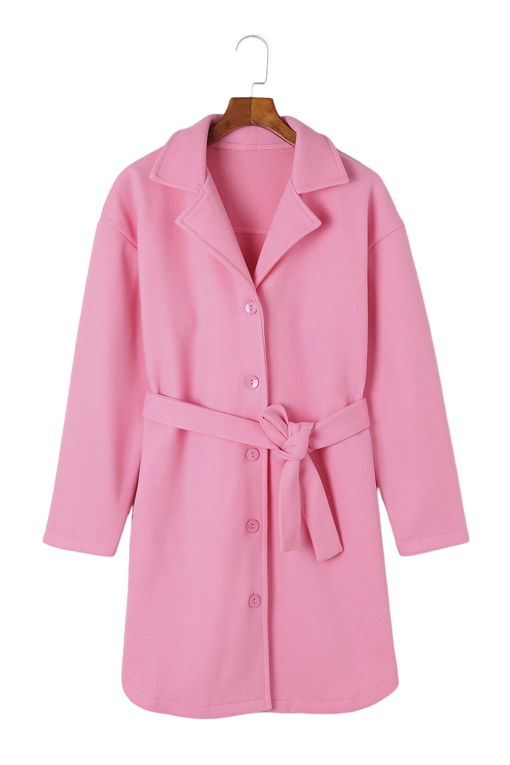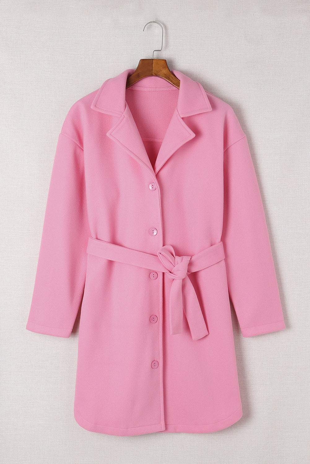 With its timeless design and comfortable fit. this Pink Solid Color Buttoned Coat With Tie is sure to become a wardrobe staple.