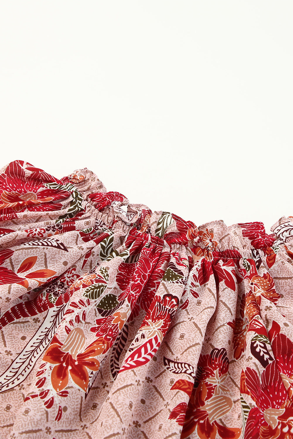 This Pink Split V Neck Printed Blouse is the perfect addition to your wardrobe.