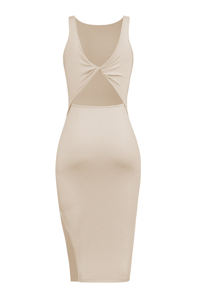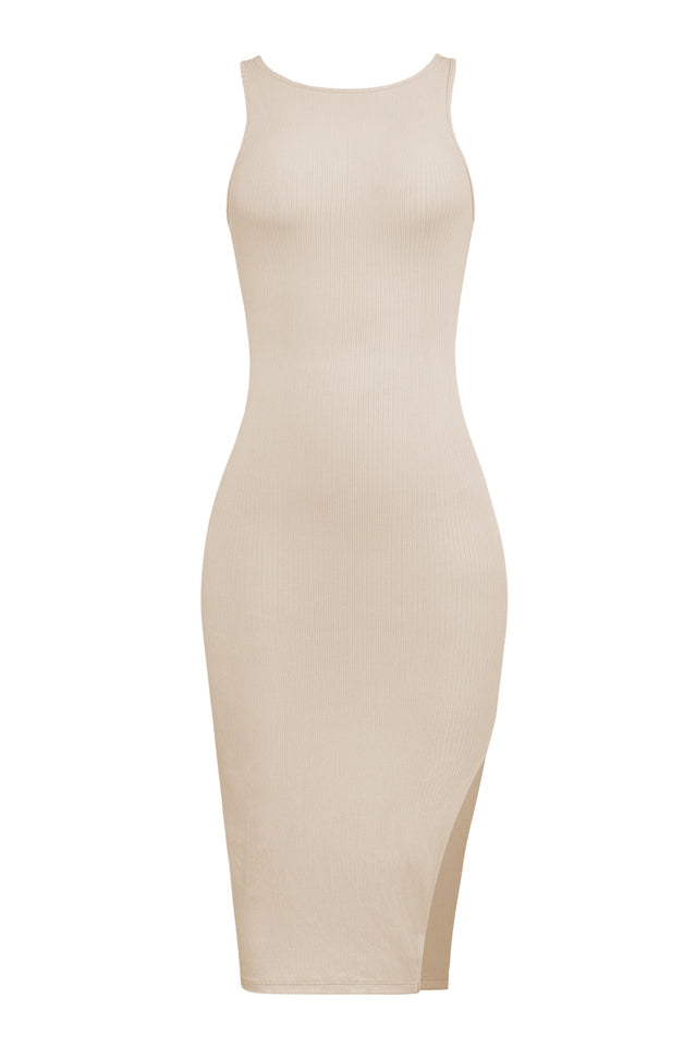 - Midi length dress cut in a ribbed true knit fabrication