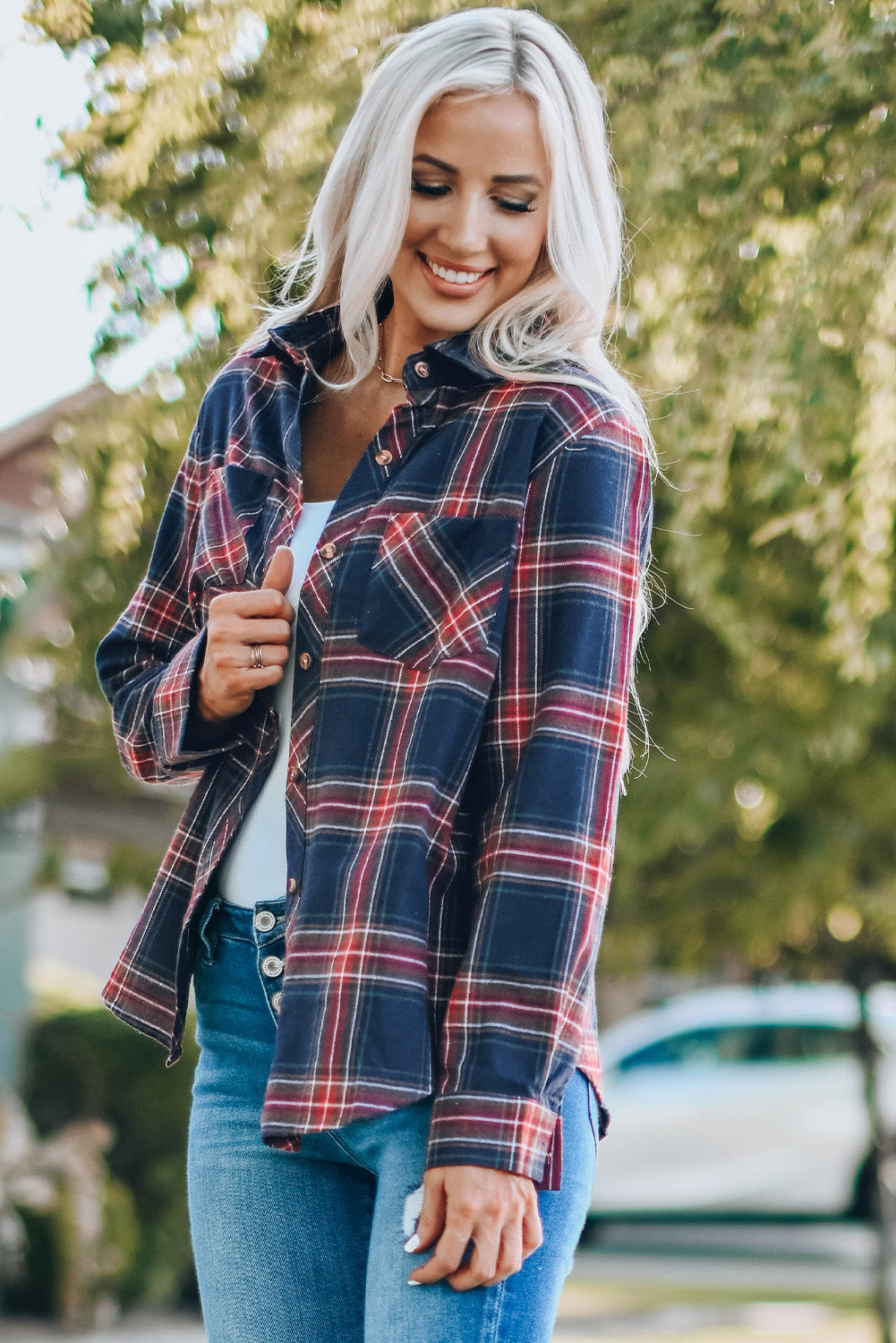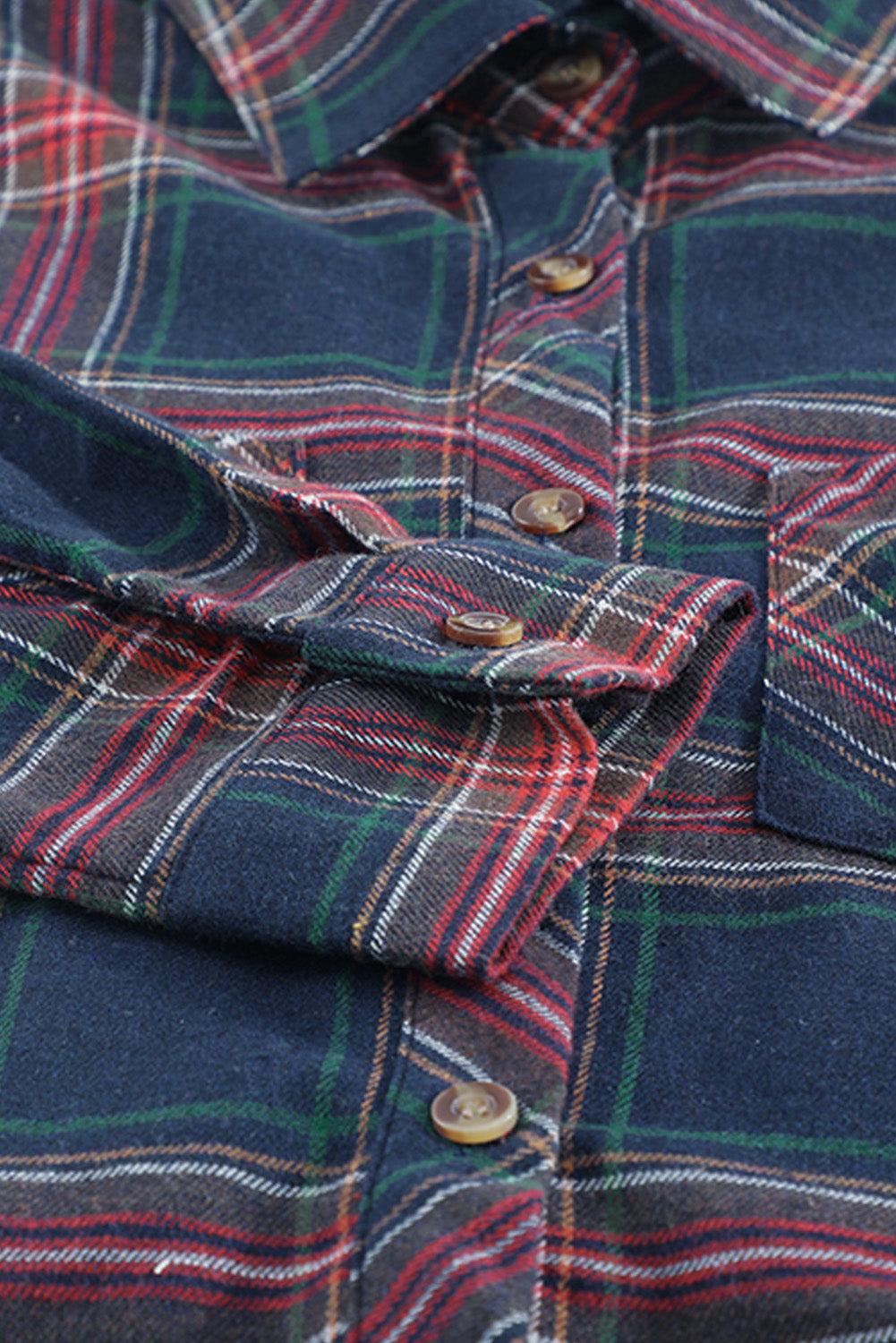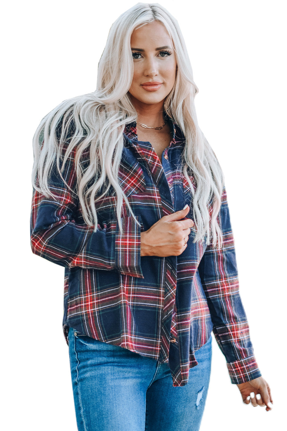 With its timeless design and comfortable fit. this Plaid Button Pocket Long Sleeve Asymmetric Shirt is sure to become a wardrobe staple.