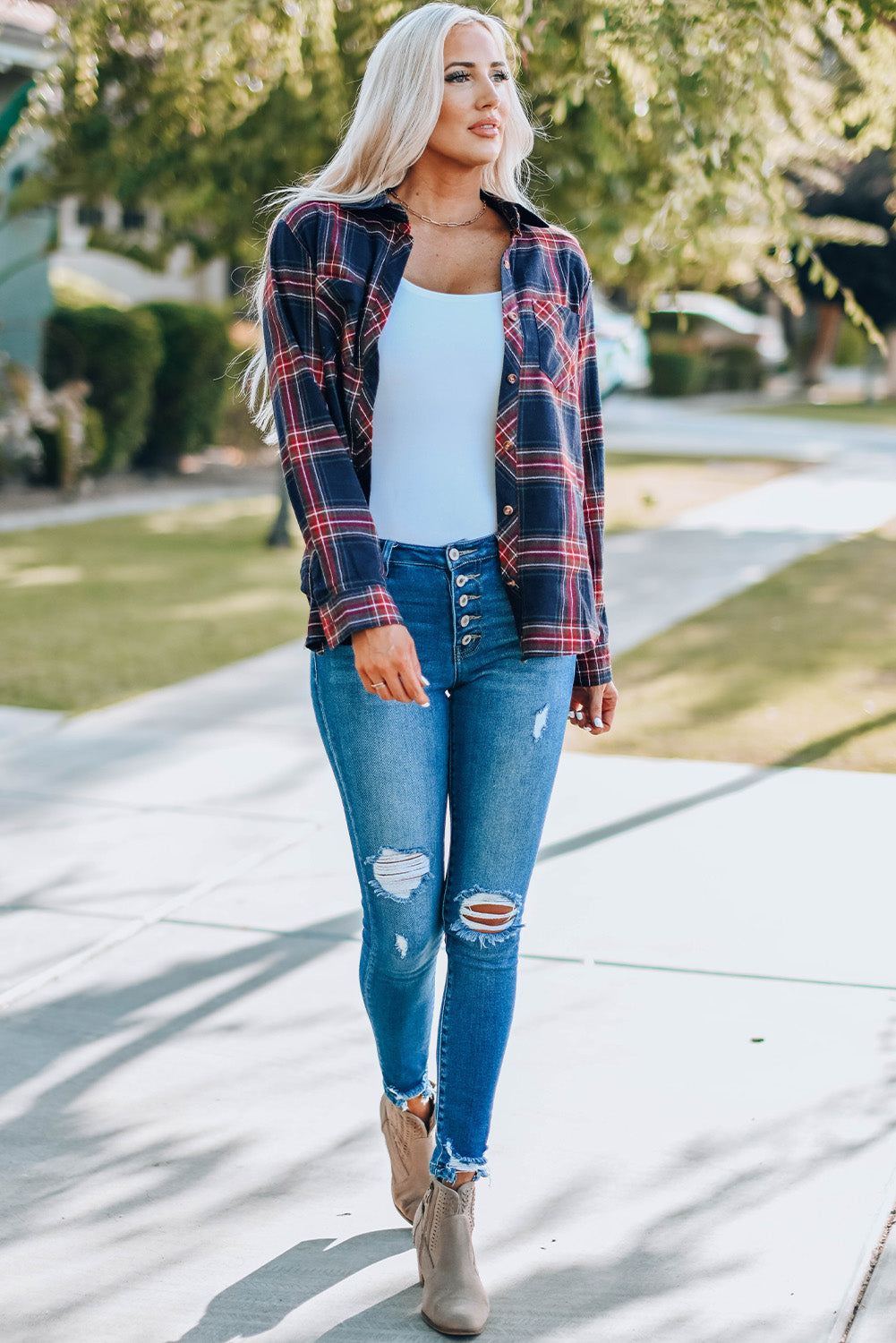 This Plaid Button Pocket Long Sleeve Asymmetric Shirt is the perfect addition to your wardrobe.
