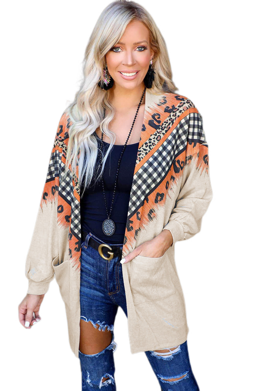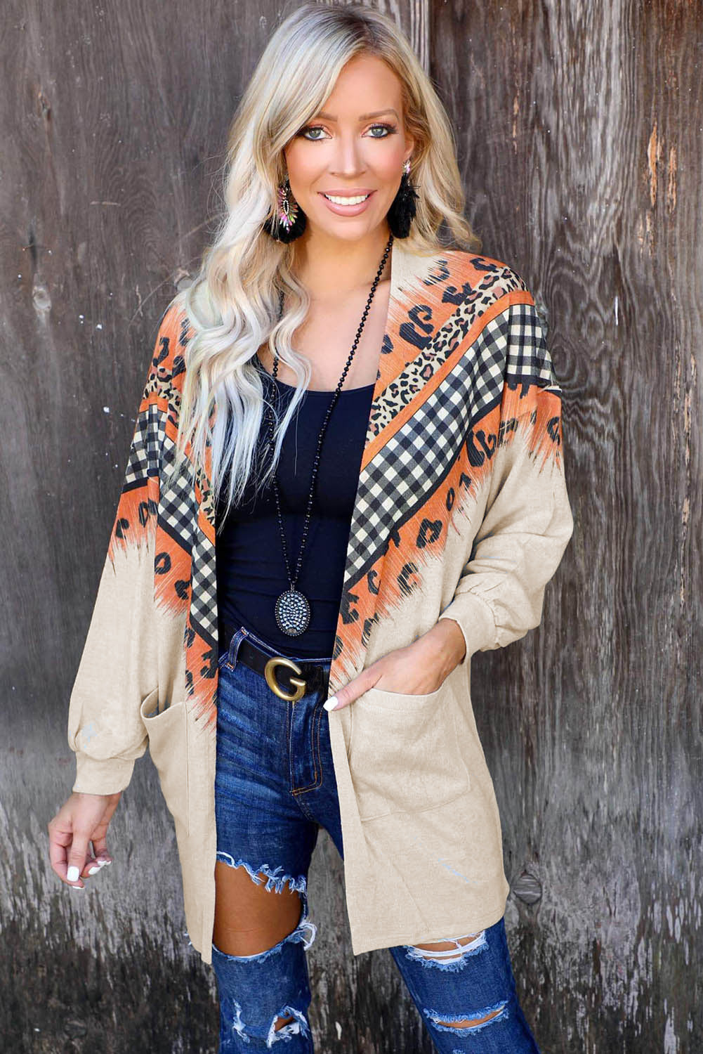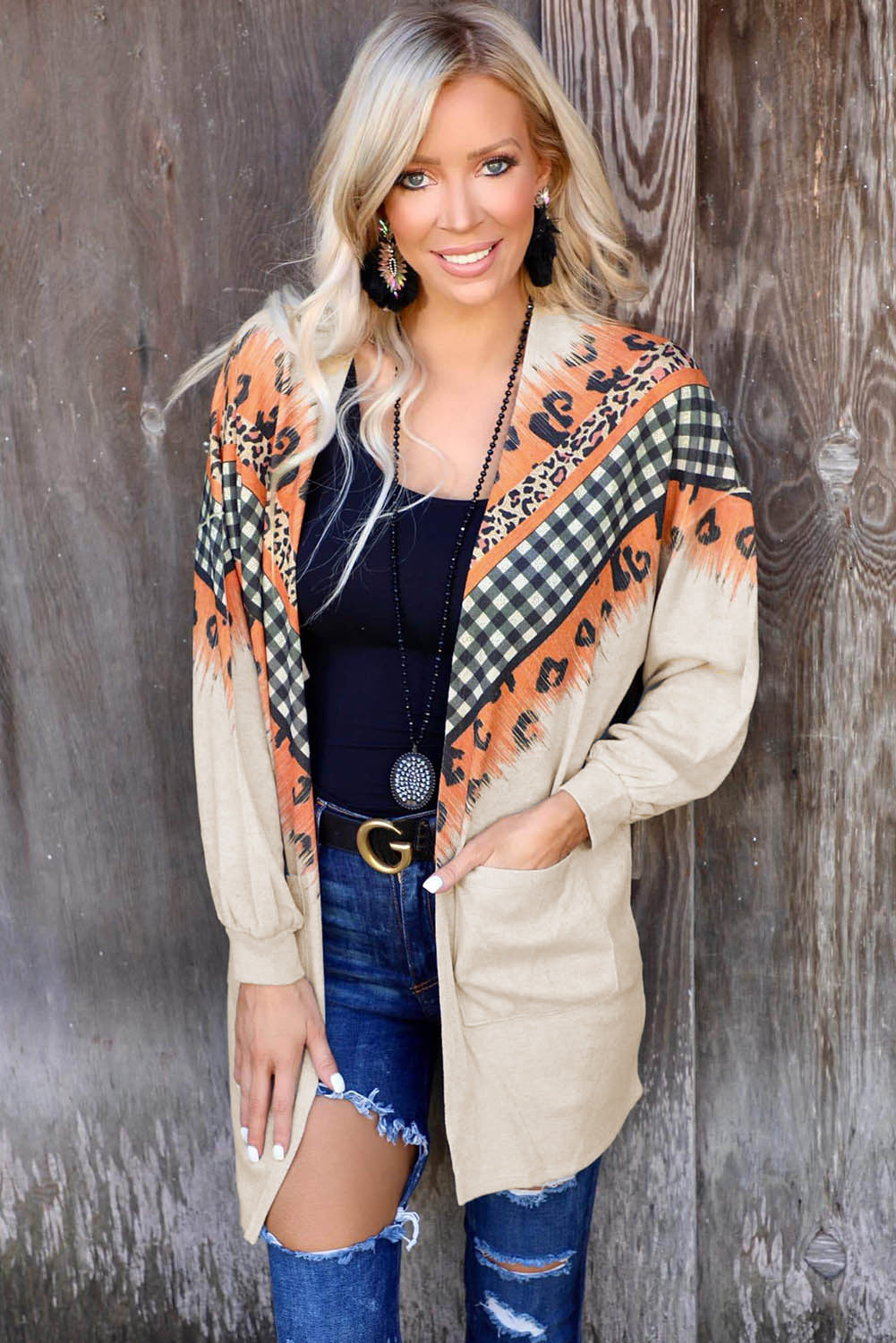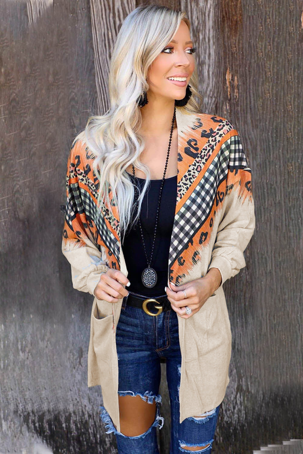 Introducing the Plaid Leopard Chevron Cardigan. the perfect addition to your wardrobe.