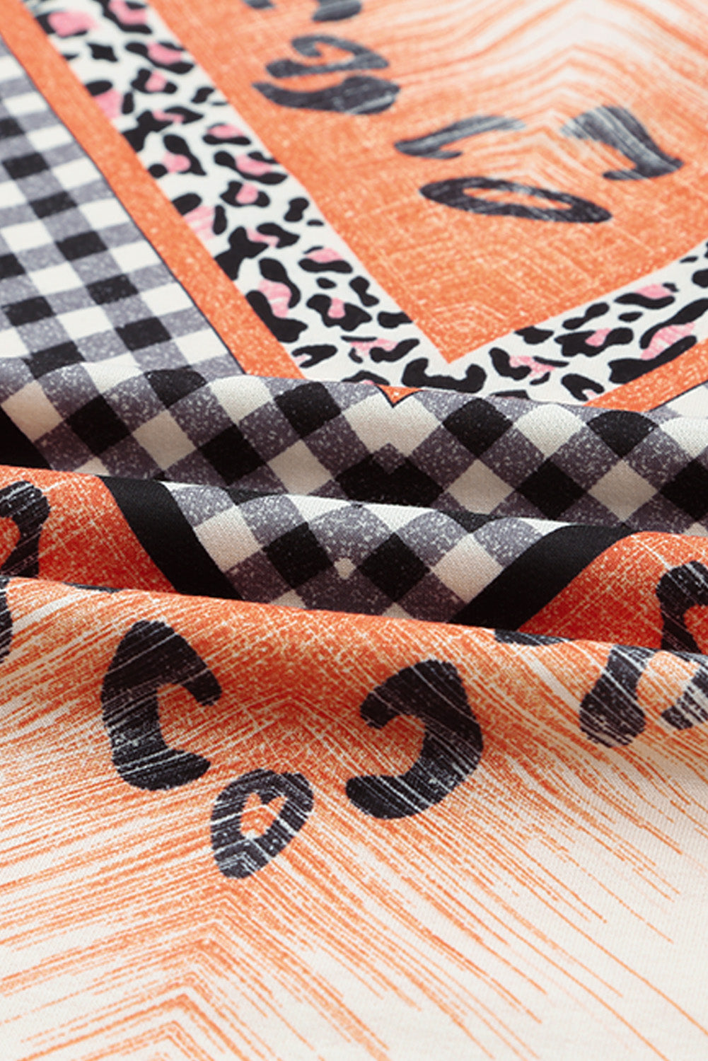 The unique chevron pattern features a bold plaid design with a leopard print. creating a look that is sure to turn heads.