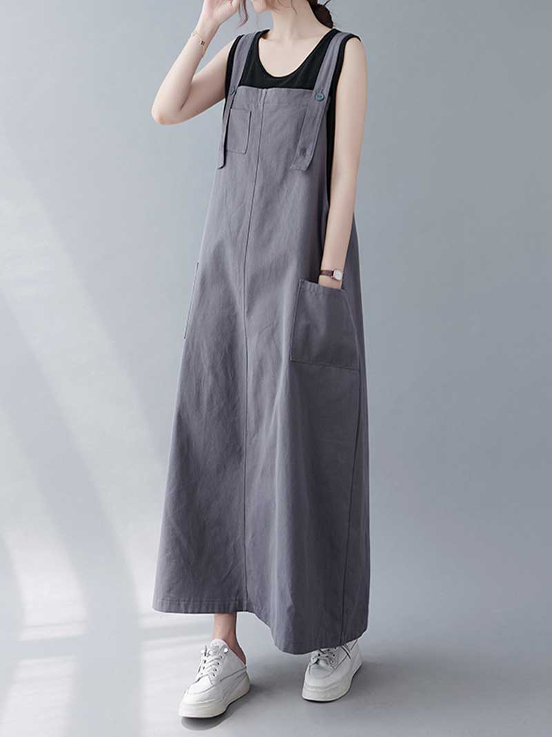Looking for a summer dress that's perfect for those hot days? Look no further than our Plain Cotton Sleeveless Pocket Style Salopette Dress! Made from lightweight cotton fabric. this dress is perfect for keeping you cool and comfortable all day long. We love the grey color - it's perfect for versatile styling. Dress it up with some heels and statement jewelry for a night out.